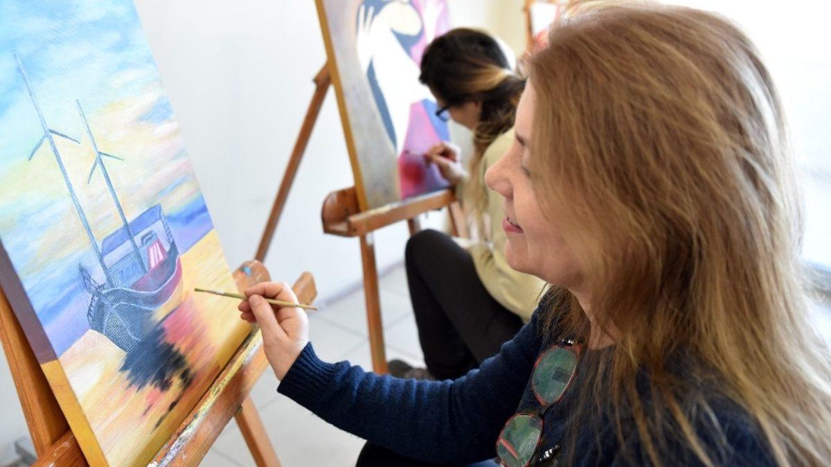 Tepebaşı Belediyesi Hedef Batıkent Belde Evi’nde yetişkinlere yönelik açılan resim kursuna katılan kadınlar, hem resim yapmanın tekniklerini öğreniyor hem de sosyalleşiyorlar.