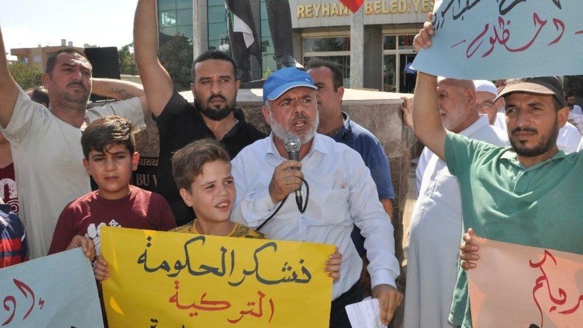 İnsani Destek ve İnsani Bağış Derneği organizasyonuyla Hatay’ın Reyhanlı ilçesinde, belediye önündeki alanda toplanan Suriyeliler "İdlib’de insanlar ölmesin" diye müdahaleyi protesto etti.