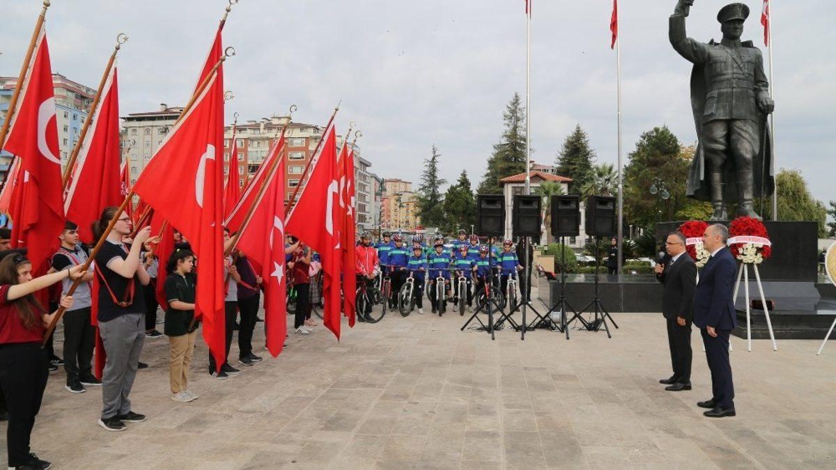 Rize’de 29 Ekim Cumhuriyet Bayramı dolayısıyla Valilik önünde bulunan Atatürk anıtında kutlama programı gerçekleştirildi.
