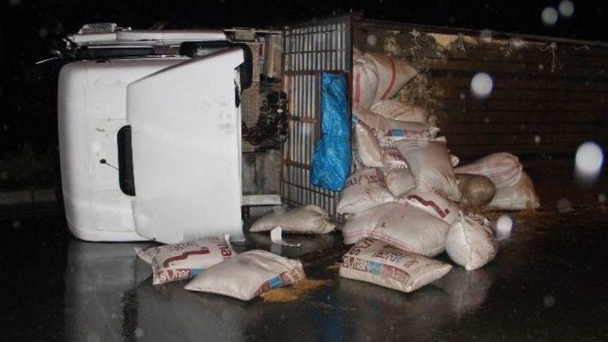 Rize’nin Çayeli ilçesinde meydana gelen trafik kazası sonrası TIR’ın kasasında bulunan 23 hayvan Karadeniz Sahil Yolu’na saçıldı.Edinilen bilgiye göre, gece geç saatlerde Kars’tan Rize istikametine gitmekte olan 76 DE 893 plakalı Nizamettin Yıkıcı yönetimindeki TIR, şoförün Karadeniz Sahil Yolu güzergahında ilerlerken direksiyon hakimiyetini kaybetmesi sonucu yola savruldu. Savrulma sonucu araç içerisinde bulunan Erol Çoban ağır yaralanırken, TIR’ın kasasında Rize’deki kurban pazarına götürülmek istenen 23 kurbanlık hayvan ise yola savruldu.Olay yerine çağrılan ambulansla Rize Devlet Hastanesi’ne sevk edilen Erol Çoban’ın sağlık durumunun ciddiyetini koruduğu bildirildi.Kaza sonrası yaklaşık yarım saat trafiğe kapanan Karadeniz Sahil Yolu, kaza yapan TIR’ın vinçler yardımıyla kaldırılmasının ardından trafiğe açıldı.