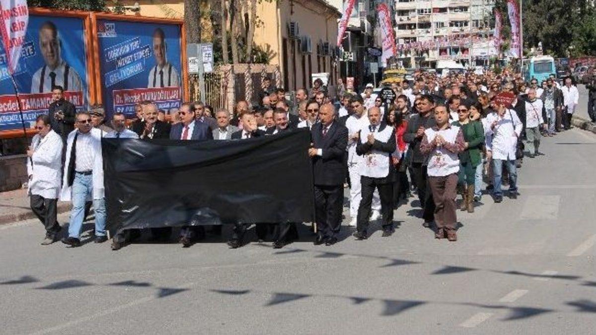 Hekimler başta olmak üzere sağlık çalışanlarının Türkiye genelindeki grev eyleminin Mersin ayağında yürüyüş düzenlendi. Sağlık çalışanları, herkese eşit, ücretsiz sağlık hakkı isterken, sağlık politikalarını protesto etti.Alınan grev kararı doğrultusunda Mersin’deki sağlık çalışanları bugün bir iş bırakma eylemi yaptı. Başta hekimler olmak üzere sağlık çalışanları, grev kapsamında yürüyüş düzenledi. Mersin Tabip Odası önderliğinde Mersin Sağlık Hakkı Meclisi tarafından düzenlenen yürüyüş için sabah erken saatte İstasyon Meydanı’nda toplanan sağlık çalışanları, açtıkları üç siyah pankartla Cumhuriyet Alanı’na kadar yürüdü. Yürüyüşe, CHP Mersin Milletvekili Aytuğ Atıcı, CHP Mersin İl Başkanı Faruk Mehmet Akar, Mersin Büyükşehir Belediye Başkanı Macit Özcan ve Türk Tabipleri Birliği (TTB) Merkez Konseyi Üyesi İsmail Bulca da katıldı. Yürüyüş boyunca ‘Sağlık Haktır Satılamaz’, ‘Herkese Eşit, Ücretsiz Sağlık Hizmeti’, ‘Sağlık Haktır Susma Haykır’ ve Berkin Elvan için sloganlar atan gruba vatandaşlar çaldıkları korna ve alkışlarla destek verdi. İstiklal Caddesi’ni trafiğe kapatarak Cumhuriyet Alanı’na ulaşan grup, burada taleplerini dile getirdi.SES Mersin Şube Başkanı Yılmaz Bozkurt, tüm Türkiye’de 9 sağlık örgütünün insanca ve kardeşçe yaşamanın koşullarının oluşturulması, sağlıkta katkı ve katılım paylarının kaldırılması, iş ve can güvencesi için ve angaryaya karşı sokaklara çıktıklarını söyledi.“TALEBİMİZ YERİNE GETİRİLENE KADAR ALANLARDAYIZ”Mersin Tabip Odası Başkanı Galip Kırıcı da, grup adına bir açıklama yaparak “Torba yasa, 18 Ocak’ta Resmi Gazete’de yayımlanarak yürürlüğe girdi” dedi.Kırıcı, daha sonra Mersin Sağlık Hakkı Meclisi’nin ortak basın açıklamasını okudu. Sağlık çalışanlarının 14 Mart’ta yine bayram yapmadıklarını ifade eden Kırıcı, halkın sağlık hakkına sahip çıkmak ve artan şiddet olaylarına ‘dur’ demek için bugün yatan hastalar ve aciller dışında sağlık hizmeti vermeyeceklerini kaydetti. Sağlık çalışanlarının 10 acil talebini sıralayan Kırıcı, sözlerine şöyle devam etti: “Çalışan ve emekli tüm sağlık çalışanlarının ücretleri acil olarak iki katına çıkarılmalı, performansa göre ücretlendirme sisteminden ivedi olarak vazgeçilmelidir. Sağlık çalışanlarına yönelik şiddeti ortadan kaldıracak düzenleme yapılmalıdır. Kamu ve özel sektör ayrımı yapılmaksızın 15 dakikadan daha kısa süreli hasta randevusu verilmemelidir. Aile hekimliğine yönelik nöbet gibi angarya uygulamalardan vazgeçilmelidir. Özel sağlık kuruluşlarında çalışan hekimlerin sözleşmelerinde TTB taraf olarak kabul edilmelidir. Sağlıktaki bütün katkı-katılım payları ve ilave ücretler kaldırılmalıdır.”Kırıcı, bu acil talepleri kabul edilene kadar alanlarda mücadeleye devam edeceklerinin altını çizdi.TTB Merkez Konseyi Üyesi Bulca da halkın sağlık hakkının yok edilmesinden, başta hekimler olmak üzere sağlık çalışanlarının iş, can ve çalışma güvencesinin yok edilerek hayatlarının karartılmasından sonra 14 Mart’ı Tıp Bayramı olarak kutlayamadıklarını, bir mücadele günü olarak kutladıklarını dile getirdi.Kendisi de bir hekim olan CHP Milletvekili Prof. Dr. Atıcı ise 14 Mart’ın bir direniş günü olduğunu vurgulayarak "Hekimlerin en önemli görevi kendi özlük haklarını korumaktan önce halkın sağlığını korumaktır” diye konuştu. Hekimler ve tüm sağlık çalışanlarının artık bu ülkede öldürüldüğünü anlatan Atıcı, sözlerini şöyle sürdürdü: "Yüce görevleri alçaltıcı sözler, itibarsızlaştırıcı söylemler halkla hekimleri karşı karşıya getirmiştir. Halkımız, sağlık çalışanlarını sever ve buna ‘dur’ demesini çok iyi bilmiştir. Halkımız gizli, mahrem bilgilerinin satılmasını istememektedir. Halkımız artık kızamıkla uğraşmak istememektedir. Halkımız şişirilmiş rakamlarla sağlığın iyiymiş gibi olduğunu görmek istememektedir. Halkımız artık hastaneye gittiğinde tam 11 noktada katkı ve katılım payı ödediğinin farkına varmıştır.”Konuşmaların ardından Atatürk Anıtı’na başta Mersin Tabip Odası olmak üzere Mersin’deki sağlık kuruluşlarının çelenkleri konuldu.