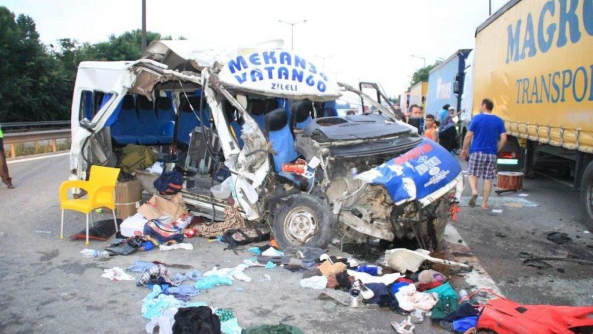 Sapanca ilçesinde minibüsün emniyet şeridinde bekleyen tıra çarpması sonucu 7'si çocuk, 20 kişi yaralandı. Alınan bilgiye göre, İstanbul’dan Tokat’taki akrabalarının düğününe gitmek üzere yola çıkan Cengiz Akbaş kullandığı yabancı plakalı tıra arkadan çarptı. Kazada minibüs sürücüsü ile aynı araçta bulunan Ebru, Büşra, Salih, Merve, Kerem ve Ayfer Gündüz, Murat Cantürk, Mehtap ve Ahmet Arslan ile kimlikleri henüz belirlenemeyen 10 kişi yaralandı. Yaralılar, olay yerine gelen çok sayıda ambulansla Kocaeli ve Sakarya'daki çeşitli hastanelere kaldırıldı. Kaza nedeniyle otoyolun Ankara yönünde kilometrelerce uzunlukta araç kuyruğu oluştu.