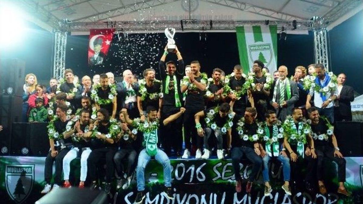 6 yıl önce düştüğü Bölgesel Amatör Lig (BAL)’da şampiyonluk mücadelesi veren Türkiye’nin köklü kulüplerinden Muğlaspor, Bölgesel Amatör Lig (BAL) 10. Gruptaki şampiyonluğunun ardından şampiyonluk kupasını Atatürk stadında düzenlenen şampiyonluk gecesinde kavuştu. Şampiyonluk törenine Muğla Valisi Amir Çiçek, CHP Muğla Milletvekili Akın Üstündağ, Büyükşehir Belediye Başkanı Osman Gürün, Muğla Sıtkı Koçman Üniversitesi Rektörü Prof. Dr. Mansur Harmandar, Emniyet Müdürü Hakan Çetinkaya, Menteşe Belediye Başkanı Bahattin Gümüş, Gençlik Hizmetleri ve Spor İl Müdürü Serkan Öçalmaz ve taraftarlar katıldı.Şampiyonluk kutlama töreninde konuşan kulüp Başkanı Haluk Beyimoğlu, seçilmiş ve atanmışların verdikleri imkanları iyi kullandıklarını belirterek, “Bu başarının asıl mimarları şehrimin büyükleri ve taraftarlarımızdır. Ben ve yönetimim sadece bu başarıda vesile olduk. Biz Muğlalıların neler başarabileceğini 1 Mayıs 2016 tarihinde gösterdik. Biz Muğla olarak Türkiye’nin en büyük marka kentinin sahibiyiz ve bunun kıymetini bilmiyoruz. Ama bu elde edilen başarı sadece bir başlangıç” dedi.Muğla Büyükşehir Belediye Başkanı Dr. Osman Gürün, bugünlere gelinmesinde büyük bir emeğin yattığını söyledi. Başkan Gürün, “Biz hiç de layık olmadığımız halde 6 yıldır BAL liginden 3. Lige çıkmaya çalışıyoruz. Bu süreçten çok iyi ders almamız lazım. Eğer bir şehrin valisi, Belediye Başkanı, taraftarı, kulübün yönetimi ve futbolcuları inanırsa başarılmayacak ve aşılmayacak hiçbir engel yoktur. Başka kulüpler ne yaparsa yapsın, biz hiçbir zaman spor ahlakının dışına çıkarak maç kazanmaya çalışmadık. Kendimize güvendik, futbolcularımıza güvendik ve seyircimize güvendik bu şampiyonluğu hak ettik. Önümüzdeki yıllarda 2. Lig ve daha yukarısını ulaşmak hiç de ulaşılmayacak hedefler değil. Yeter ki birlikte ve beraber olalım” dedi.Vali Amir Çiçek 3. Ligin hayırlı ve uğurlu olmasını diledi. Çiçek, “Bu taraftar ve bu yönetim ile 3. Lig değil, 2. Lige hazır olmalısınız. 3. Lige çıkmayı bir yıl önce bizler inandık, yönetim inandı, futbolcular inandı, taraftar inandı. Biz de ilin yöneticileri olarak her zaman sizlerin yanında olduk. 1 Mayıs’ta 520 kilometrelik yolu Muğlaspor flaması ile kat eden ve sonunda mutlu sona ulaşan Muğlaspor’un başarısı bizler kadar bütün Muğla’yı memnun etti. Taraftarını her zaman yanında gören bu takım 2. Lige de en kısa zamanda çıkacaktır. Bunun için önce inanmak gerekir” dedi.Konuşmaların ardından saha içine kurulan platforma şampiyon takımın futbolcuları tek tek sahneye çağrıldı. Coşku içinde platforma çıkan futbolcuların ardından Teknik Direktör Gürkan Ferhatoğlu alkışlar arasında sahneye geldi. Ferhatoğlu, takımın başına sezon başladıktan sonra geldiğini belirterek, “Futbolcularıma her zaman şunu söyledim. Bir takıma karşı oynamıyoruz, her maçımızı buna göre hazırlanmalıyız dedim. Çok şükür Allah‘ıma bizi mahcup etmedi. Taraftarlarımıza teşekkür ediyorum. Bizleri hiçbir zaman yalnız bırakmadılar. İnşallah profesyonel liglerde de başarılı oluruz” dedi.Takımın tamamının platformda yer almasının ardından Vali, Büyükşehir Belediye Başkanı ve diğer protokol üyeleri futbolcular ile bir araya gelirken, şampiyonluk kupası Vali Amir Çiçek tarafından takım kaptanı Ozan Özkan’a verdi. Kupa töreninde havai fişek gösterisi yapılırken, takım daha sonra hazırlanan otobüs ile birlikte taraftarları selamladıktan sonra şehir turu attı.