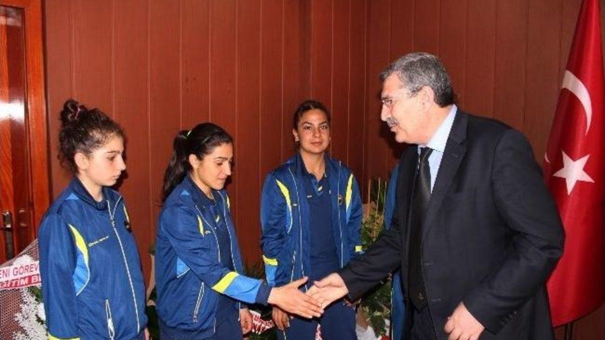 Türkiye Liseler arası Kros Şampiyonası’nda dereceye giren öğrenciler, İl Milli Eğitim Müdürü Hatem Dursun’u ziyaret etti.Mersin’de yapılan Türkiye Liseler arası Kros Şampiyonası’nda takım halinde Türkiye şampiyonu olan ve 30 Mart - 4 Nisan 2014 tarihleri arasında İsrail’in Liberias kentinde bulunan Emek Hama Aya Not bölgesinde Uluslararası Okul Sporları Federasyonu (ISF) tarafından düzenlenen Dünya Liselerarası Kros Şampiyonası’na katılacak sporcularından Nuran Satılmış, Sibel Özdemir, Gülnaz Uskun, Nazan Satılmış, Gülsüm Tunç, Gülşen Karataş, Ramazan Karagöz, Nurkan Dağtekin ve antrenör Ramazan Yardımcı ile Kız Teknik ve Meslek Lisesi Okul Müdürü Kürşat Akdeniz ile İl Milli Eğitim Müdürü Hatem Dursun’u makamında ziyaret etti. Sporcularla bir süre görüşen İl Milli Eğitim Müdürü Hatem Dursun, İsrail’in Liberias kentinde yapılacak olan Dünya Liseler arası Kros Şampiyonası’nda dünya şampiyonluğu beklediğini söyledi.Sporculara hediyeler veren Dursun, sporculara başarılılar diledi. Ziyarette şube müdürü Neriman Karakoç da hazır bulundu.