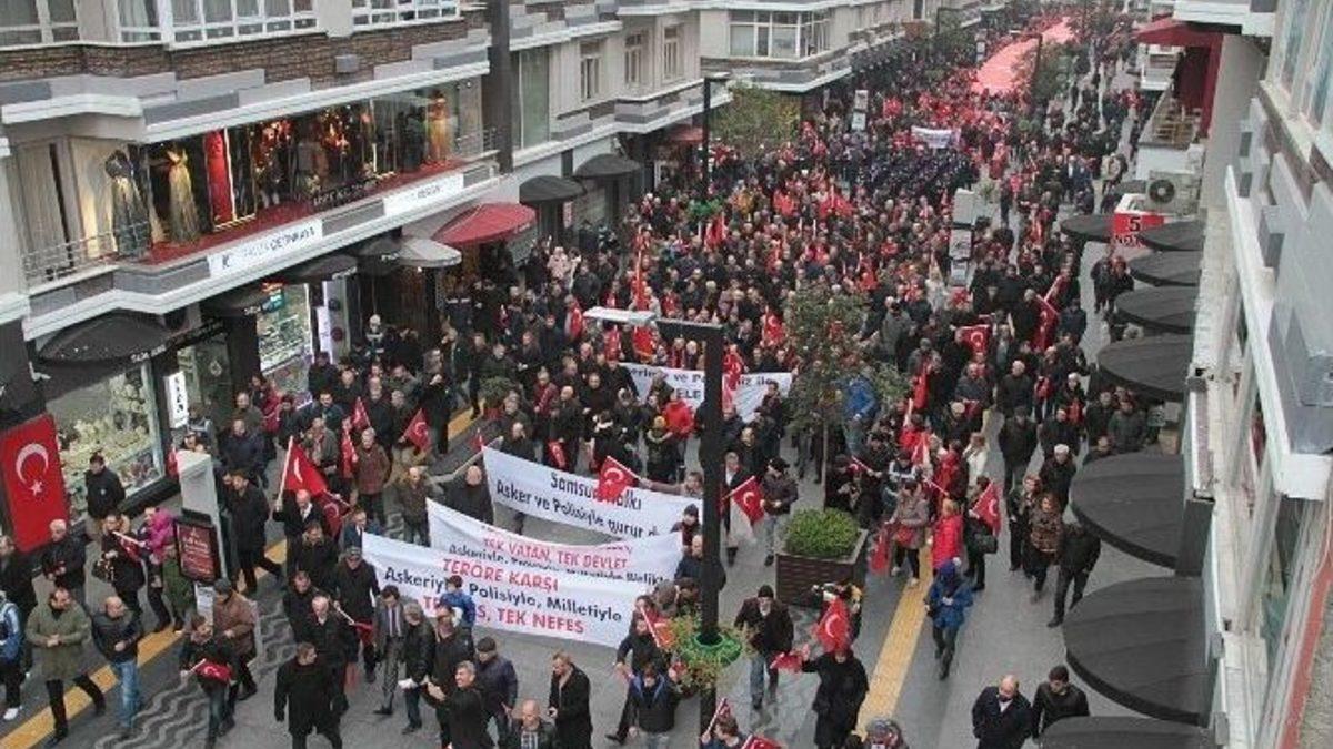 Samsun’da yapılan “Teröre Karşı Birlik Mitingi”nde birlik ve beraberlik mesajları verildi, hain terör saldırıları protesto edildi.Türkiye’deki hain terör saldırılarını protesto etmek için Türkiye Esnaf ve Sanatkarları Konfederasyonu Başkan Vekili Fevzi Apaydın önderliğinde Samsun’da “Teröre Karşı Birlik Mitingi” düzenlendi. İlkadım ilçesi İstiklal Caddesi üzerindeki Olgunlaşma Enstitüsü önünde toplanan kalabalık Cumhuriyet Meydanı’na kadar yürüdü. Yürüyüşe Samsun Valisi İbrahim Şahin, MHP Samsun Milletvekili Erhan Usta, CHP Samsun Milletvekilleri Kemal Zeybek ve Hayati Tekin, Büyükşehir Belediye Başkanı Yusuf Ziya Yılmaz, Atakum Belediye Başkanı İshak Taşçı, İlkadım Belediye Başkanı Erdoğan Tok, Canik Belediye Başkanı Osman Genç, Türkiye Esnaf ve Sanatkarları Konfederasyonu Başkan Vekili Fevzi Apaydın, AK Parti İl Başkanı Muharrem Göksel, CHP İl Başkanı Tufan Akcagöz, TSO Yönetim Kurulu Başkanı Salih Zeki Murzioğlu, ilçe belediye başkanları, kamu kurum ve kuruluş temsilcileri, sivil toplum kuruluşu temsilcileri, muhtarlar, öğrenciler ve vatandaşlar katıldı.Ellerindeki Türk bayrakları ile yürüyüş yapan vatandaşlar teröre karşı tepkilerini slogan atarak gösterirken, yaklaşık 50 metrelik Türk bayrağı da açıldı. Yürüyüş sonunda Cumhuriyet Meydanı’nda da Büyük Cami İmamı Hamdi Demirbaş, şehitler için Kur’an-ı Kerim okuyarak dua etti. Ardından Emine-Ahmet Yeni Kız Anadolu İmam Hatip Lisesi öğrencisi Meryem Yiğit şiir okudu.Daha sonra yürüyüşe katılanlara teşekkür konuşması yapan Türkiye Esnaf ve Sanatkarları Konfederasyonu Başkan Vekili Fevzi Apaydın, “Emeği geçen herkese teşekkür ediyorum. İstiklal Caddesi’nden başlayarak Cumhuriyet Meydanı’na kadar yürüyüşümüze katılan tüm katılımcılara teşekkür ediyorum. Tüm şehitlerimizi ebediyete uğurladık. Bugün ise terörü lanetlemek için buradayız. Ülkemiz kritik bir süreçten geçiyor. Ülkemiz üzerinde kirli oyunlar oynanmak ve huzurumuzu bozulmak isteniyor. Terör saldırıları ile birliğimiz ve beraberliğimiz bozulmaya çalışılıyor. Önce 15 Temmuz darbe girişimi, geçen hafta İstanbul’da polisimize, Kayseri’de askerimize ve Ankara’da bir sergide Rusya’nın Ankara Büyükelçisi’ne yapılan saldırılar son derece kahpecedir. Bu tür vatan hainliğini dünyada çok az millet yaşamıştır. Şunu unutmayalım ki, birinci dünya savaşında 7 düvelin yıkamadığı birlikteliğimizi bunlarda yıkamayacak ve başaramayacaklar. Zaten başaramadıkça da vahşileşip adileşiyorlar. Son Rusya Büyükelçisi’ne yapılan saldırı da iki ülke arasında son dönemdeki diyaloğun gelişmemesi için yapılmış bir kalleşliktir” dedi.Mitingin sonunda da öğrenciler polis memurlarıyla selamlaşarak fotoğraf çektirdiler.