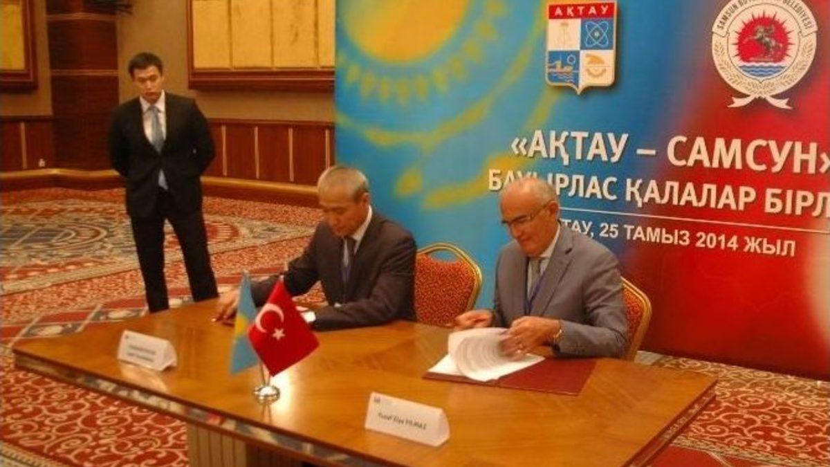 Samsun Büyükşehir Belediyesi, Kazakistan’ın Aktau şehri ile kardeşlik protokolü imzaladı.Samsun Büyükşehir Belediye Başkanı Yusuf Ziya Yılmaz, UNESCO’nun önderliğinde gerçekleştirilen “7. Avrasya Dünya Mirası Şehirleri Uluslararası Konferansı”na katılmak ve kardeş şehir protokolü imzalamak için Kazakistan’ın Aktau şehrine gitti. Başkan Yılmaz ve beraberindekileri Türkiye’nin Aktau Başkonsolosu Muteber Kılıç ve diğer Konsolosluk çalışanları karşıladı. Şehri gezen Başkan Yılmaz ve beraberindeki heyet daha sonra Aktau Başkonsolosu Muteber Kılıç’ı makamında ziyaret etti. Şehir hakkında misafirlerine bilgi veren ve Türk-Kazak ilişkilerinin bulunduğu seviyenin daha da geliştirilmesi için gözlemlerini aktaran Başkonsolos Kılıç, Başkan Yılmaz’ın onuruna bir de akşam yemeği verdi. Yemeğe, Aktau Şehir Valisi Edil Zhanbyrshin de katıldı. İki şehir arasında nelerin yapılabileceğinin konuşulduğu yemekte karşılıklı olarak kültürel, sanayi, ticari ve turizm alanlarında yapılabilecek işbirliği ve ilişkilerin nasıl geliştirilebileceği üzerinde duruldu.Şehir Valisi Edil Zhanbyrshin, Actau’nun Hazar Denizi’ne kıyısı olan, eski İpek Yolu üzerinde, doğal güzelliklere sahip bir liman şehri olmasının verdiği avantajlardan bahsederken, Başkan Yılmaz da Kazak yetkililere Samsun ile ilgili bilgiler vererek şehri tanıttı.RESMİ GÖRÜŞMELER, KONFERANS VE KARDEŞ ŞEHİR PROTOKOLÜBir sonraki gün sabah saatlerinde Samsun Büyükşehir Belediye Başkanı Yusuf Ziya Yılmaz, Mangistau Eyalet Valisi A.Aydarbayev, Safranbolu Belediye Başkanı Necdet Aksoy, Türk Dünyası Belediyeler Birliği Genel Sekreteri Fahri Solak, Birleşmiş Kentler ve Yerel Yönetimler Orta Doğu ve Batı Asya Bölge Teşkilatı Genel Sekreteri Mehmet Duman ve TÜRKSOY Yönetim Kurulu Üyesi’nin katılımlarıyla gerçekleşen bir toplantı yapıldı. Görüşmede Kazakistan’da yatırım yapmak isteyen yabancı yatırımcılara sağlanacak olan kolaylıklar ve yöntemleri masaya yatırılırken potansiyel yatırım imkanları konuşuldu. Kazak yetkililer yatırım yapacak kişilere kolaylık sağlanacağını ve inşaat, alt yapı, sanayi, ticaret kollarında ortak çalışmaya hazır olduklarını belirttiler.Bu toplantının ardından “7. Avrasya Dünya Mirası Şehirleri Uluslararası Konferansı”, Aktau Şehir Valisi Edil Zhanbyrshin’in ve Mangistau Eyalet Valisi A.Aydarbayev’in konuşmalarıyla başladı. Ardından Dünya Mirası Şehirler Örgütü Genel Sekreteri (DMŞÖ) Denis Ricard ile DMŞÖ Başkan Yardımcısı ve Safranbolu Belediye Başkanı Necdet Aksoy birer sunum gerçekleştirdiler.Konuşmaların ardından Samsun Büyükşehir Belediye Başkanı Yusuf Ziya Yılmaz ile Aktau Şehir Valisi Edil Zhanbyrshin, Aktau şehri ile Samsun’u kardeş şehir yapan anlaşmalara imza attılar. Konferans ve imza töreninin sonrasında Kazak kültüründen şarkılar ve danslar eşliğinde yemek yenildi. Aktau şehir gezisi ile devam eden gün, geleneksel Aktau çadırlarında verilen yemek, açık havada düzenlenen şarkılar, tiyatro ve dans gösterileriyle son buldu.