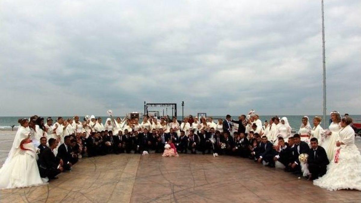 Samsun’da düzenlenen toplu nikah töreninde 43 Roman çiftin nikahı kıyıldı.Samsun Büyükşehir Belediyesi’nin düzenlediği “9. Geleneksel Toplu Nikah Şöleni”nde çeşitli nedenlerden dolayı resmi nikahlarını kıydıramayan 43 Roman çift, Anakent Sosyal Tesisleri’nde ömür boyu mutluluğa ’evet’ dedi. Nikah şöleni ilk olarak 43 çiftin şehir turu atmasıyla başladı. Büyükşehir Belediyesi Çobanlı İskelesi’ne giden çiftler hatıra fotoğrafı çektirdi. Vatandaşlar yoğun ilgi gösterdiği çiftler daha sonra Anakent Sosyal Tesisleri’ne gelirken, bazı çiftlerin nikah törenine çocukları ile katıldığı gözlendi. Maddi ve çeşitli imkansızlıklardan dolayı düğünlerini yapamadıklarını söyleyen çiftler, çok mutlu olduklarını belirterek, Başkan Yılmaz’a teşekkür ettiler.Toplu nikah töreninde bir konuşma yapan Büyükşehir Belediye Başkanı Yusuf Ziya Yılmaz, "Roman kardeşlerimiz erken evlendikleri için bu hizmeti veriyoruz. Küçük yaşta evlendikleri için nikah kıyma işlemi yapılamıyor. Dolayısıyla evlendikten sonra zaman ve imkan bulamıyorlar. Nikah kıyamadıkları için de çeşitli hizmetlerden faydalanamıyorlar. Biz de bu kardeşlerimizin çocuklarının okul ve sağlık işlemlerinde bir problem yaşanmaması için nikahlarını kıyıyoruz. Yıllardır bu işlemi yapıyoruz. Bu akşam buraya bu güzelliği katan misafirlerimize sevgi ve saygılarımı sunuyorum" dedi.Vali Şahin: "Şimdiden 3’ü tamamlıyorlar, kutluyorum"Cumhurbaşkanı Recep Tayyip Erdoğan’ın ’3 çocuk’ isteğine atıfta bulunan Samsun Valisi İbrahim Şahin, "Sayın Cumhurbaşkanımız evlilik cüzdanını verirken ’3 çocuk’ mecburiyetini getiriyor. Ama Romanlar nikah cüzdanını almadan 3’ü tamamlamaya gayret gösteriyorlar. Bunun için de kutluyorum, şimdiden Allah hayırlı uğurlu etsin diyorum" diye konuştu.43 çift arasındaki işitme engelli Tahir-Esma İnater ile Alican-Gülnur Yiğit çiftinin nikahları da Samsun Büyükşehir Belediye Başkanı Yusuf Ziya Yılmaz tarafından kıyıldı. Çiftlerin nikah şahitliğini Samsun Valisi İbrahim Şahin, Samsun Garnizon Komutanı Piyade Albay Sedat Bulut, Samsun Cumhuriyet Başsavcısı Ahmet Yavuz, Samsun Adliyesi Adalet Komisyonu Başkanı Kemal Alver, Ondokuz Mayıs Üniversitesi Rektörü Prof. Dr. Sait Bilgiç, Kavak Belediye Başkanı İbrahim Sarıcaoğlu, Salıpazarı Belediye Başkanı Halil Akgül, Samsun Baro Başkanı Av. Kerami Gürbüz ve Samsun Esnaf ve Sanatkarlar Odaları Birliği (SESOB) Başkanı Hacı Eyüp Güler yaptı. Çiftlerin nikah cüzdanlarını Vali Şahin ve Garnizon Komutanı Piyade Albay Sedat Bulut verdi. Nikah merasiminin ardından düğün pastası kesildi ve havai fişekler atıldı. Çiftler ve yakınları oynarken, Başkan Yılmaz da kısa bir süre oyunda Roman vatandaşlara eşlik etti.