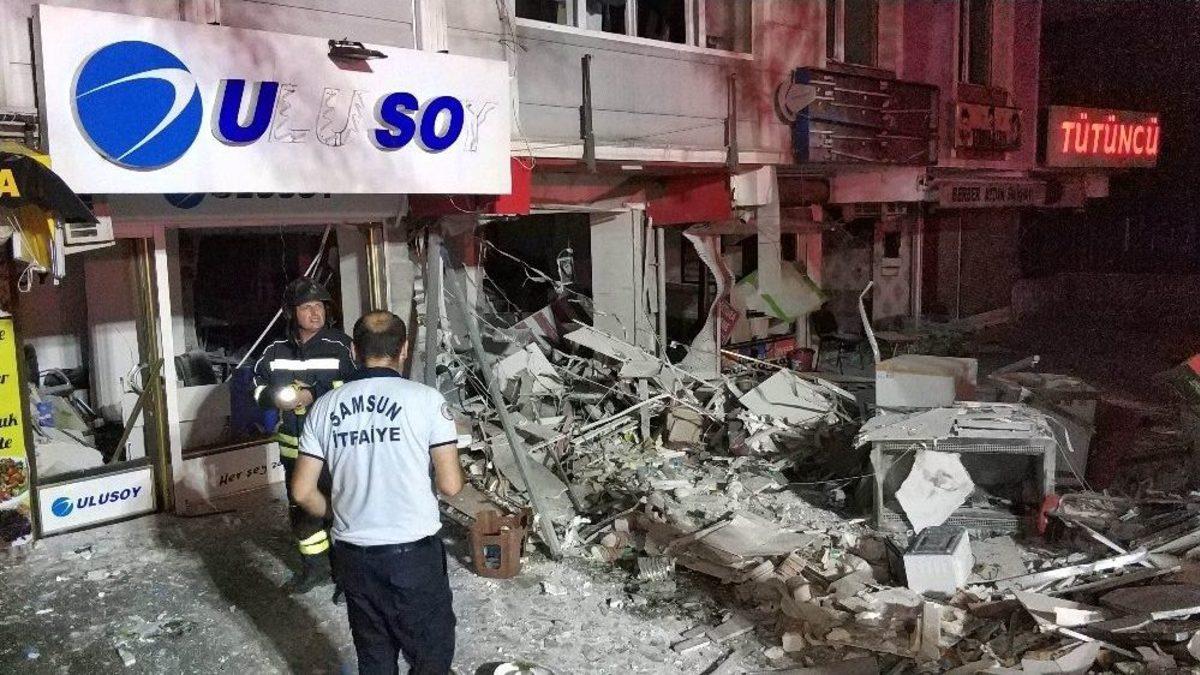 Samsun’da patlamada 5 iş yeri savaş alanına dönerken, patlamanın gündüz değil de gece yarısı olması faciadan dönülmüş oldu.Olay, Samsun’un İlkadım ilçesi Fevziçakmak Mahallesi Şehit Korhan Ekiz Bulvarı ile Yenidoğan Mahallesi Aziziye Caddesi’nin kesiştiği yerde gece saat 00.30 sıralarında meydana geldi. Edinilen bilgiye göre, henüz sebebi bilinmeyen büyük bir patlama meydana geldi. Patlamada 1 lokanta, 2 otobüs firması yazıhanesi, 1 cep telefoncu ve 1 berber dükkanı hasara uğradı. Olay yerinde çok sayıda polis, itfaiye, ambulans ve doğalgaz ekipleri sevk edildi. İş yerlerinin üzerilerinde bulunan 4 katlı binanın beton kolonları yıkılarak hasar gördü. Binanın yıkılma tehlikesi üzerine apartmanda oturanlar tahliye edildi. Park halindeki çok sayıda araçların camları kırıldı. Patlama yerinin karşısındaki iş yerinin de camları kırıldı. Patlama sırasında bir sokak kedisi hayatını kaybetti. İş yerlerinde bulunan malzemeler sokağa saçıldı. Bomba imha ekipleri, itfaiye ekipleri ve doğalgaz ekipleri, Olay Yeri İnceleme Şube Müdürlüğü ekipleri patlamanın sebebini araştırıyor. Patlamanın gündüz değil de gece olması faciayı önlemiş oldu. Patlama anının şiddeti ise güvenlik kamerasına yansıdı. Olayla ilgili soruşturma devam ediyor.
