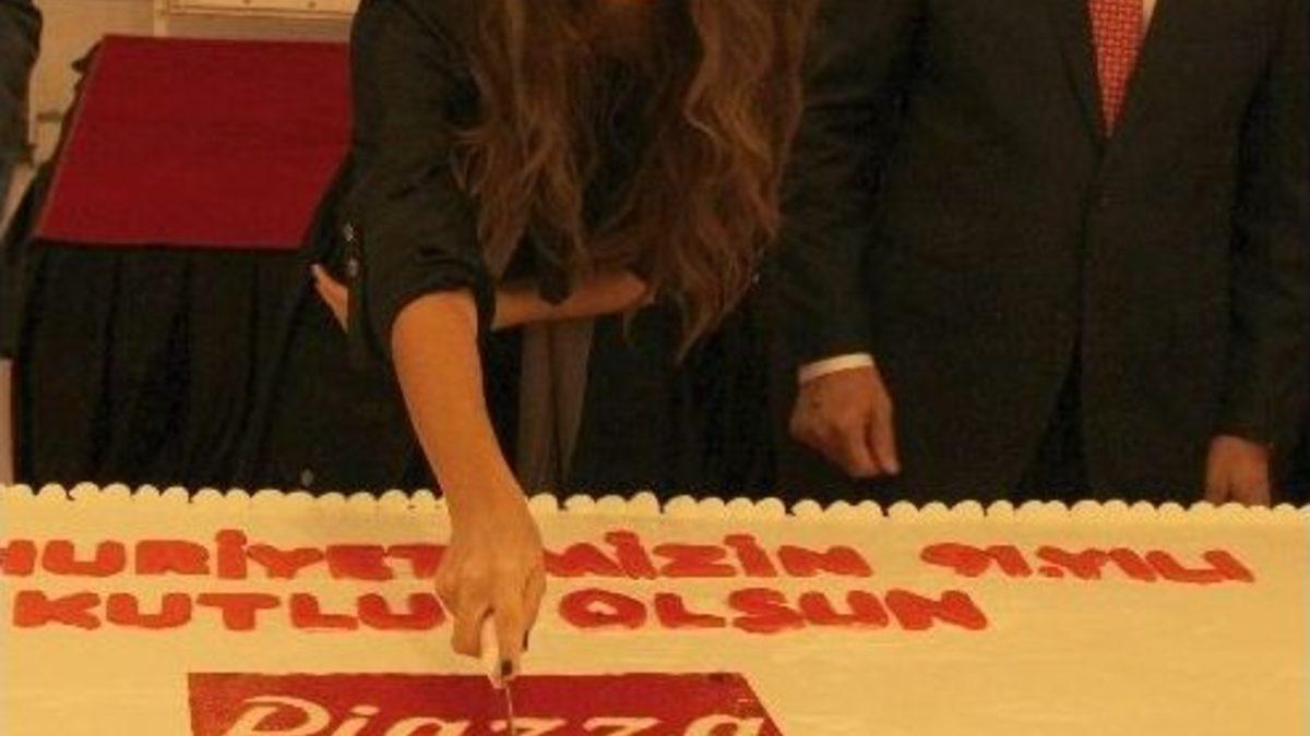SAMSUN (İHA) – Ünlü şarkıcı Atiye, Samsun Piazza Alışveriş ve Yaşam Merkezi’nde Samsun Valisi İbrahim Şahin ve Büyükşehir Belediye Başkanı Yusuf Ziya Yılmaz ile birlikte Cumhuriyet’in 91. Kuruluş Yıldönümü pastasını kesti, hayranlarına imza dağıttı.Karadeniz’in en büyük alışveriş merkezi olan Piazza’da ünlü sanatçı Atiye hayranlarıyla buluştu. Samsun Valisi İbrahim Şahin, Samsun Büyükşehir Belediye Başkanı Yusuf Ziya Yılmaz ile birlikte Cumhuriyet’in 91. Yıldönümü hastasını kesen sanatçı Atiye, daha sonra hayranlarına imza dağıttı. Samsun Büyükşehir Belediye Başkanı Yusuf Ziya Yılmaz, Karaman’daki maden faciası ve 3 askerimizin şehit edilmesinden dolayı bu yıl Cumhuriyet Bayramı’nı sade törenlerle kutladıklarını belirterek, üzüntüsünü dile getirdi. Kesilen pasta Vali Şahin ve Büyükşehir Belediye Başkanı Yılmaz tarafından vatandaşlara ikram edildi. Atiye’nin Piazza’daki konserinin ise Karaman’daki maden ocağı faciası dolayısıyla iptal edildiği öğrenildi. Kesilen dev pasta görevliler tarafından alışveriş merkezindeki vatandaşlara dağıtıldı.