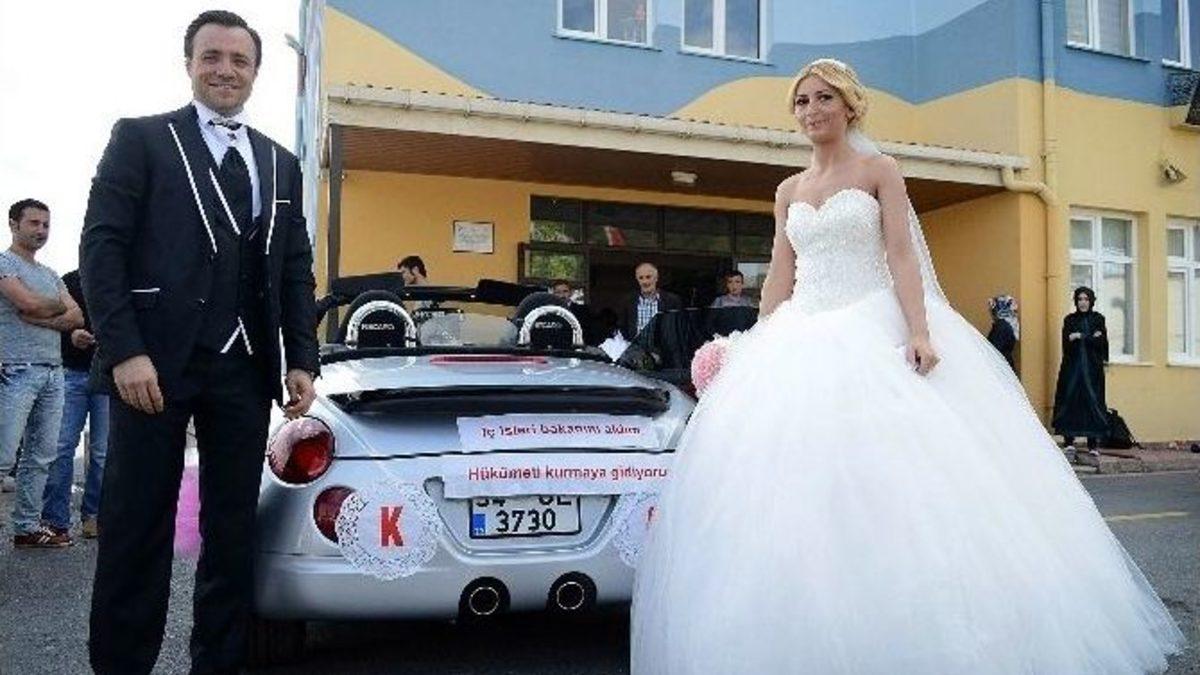 Çekmeköy’de oy kullanmaya gelinlik ve damatlıkla gelen çiçeği burnunda çift, vatandaşların ilgi odağı oldu. Arkasında ‘İçişlerini aldım, hükümet kurmaya gidiyorum’ yazan gelin arabasıyla okula gelen çift, oylarını farklı sandıkta kullandı.Çekmeköy’de aylar öncesinden aldıkları nikah tarihleri seçimlere denk gelince Cüneyt ve Kübra Aksöz çifti nikah sonrası soluğu oy kullanacakları okulda aldı. Gelinlik ve damatlıkla Çekmeköy Nükte Sözen Ortaokulu’na gelen çift, oy kullanacakları sandığın başına geçti. Gelinlik ve damatlıkla oy kullanan çift vatandaşların ilgi odağı oldu. Çiçeği burnunda çift ayrı sandıklarda oy kullandı.Basın mensuplarının sorularını yanıtlayan yeni evli çift, “Evlilik kararımızı çok önceden almıştık. Seçimin olacağını düşünemedik ama bu bizim için bir engel değil. Sonuçta her vatandaş gibi oyumuzu kullanmak zorundayız. İleride de bizim için güzel bir anı olacak” dedi.Oylarını kullanan yeni evli çift daha sonra arkasında ‘İçişlerini aldım hükümet kurmaya gidiyorum” yazan gelin arabası ile okuldan ayrıldı.