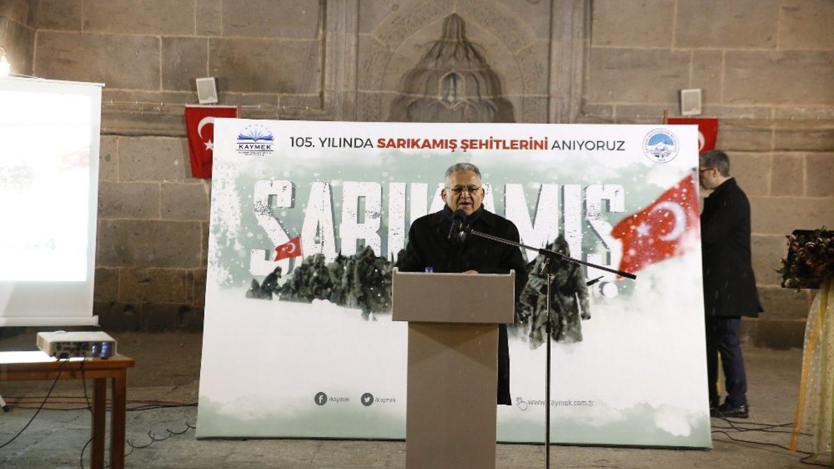 105 yıl önce gerçekleşen ve Türk tarihinin destanları arasına giren Sarıkamış Şehitleri için Kayseri Büyükşehir Belediyesi bünyesindeki KAYMEK tarafından bir anma programı düzenlendi. Kar yağışı altında yapılan anma programına Büyükşehir Belediye Başkanı Dr. Memduh Büyükkılıç ve eşi Dr. Necmiye Büyükkılıç da katıldı.