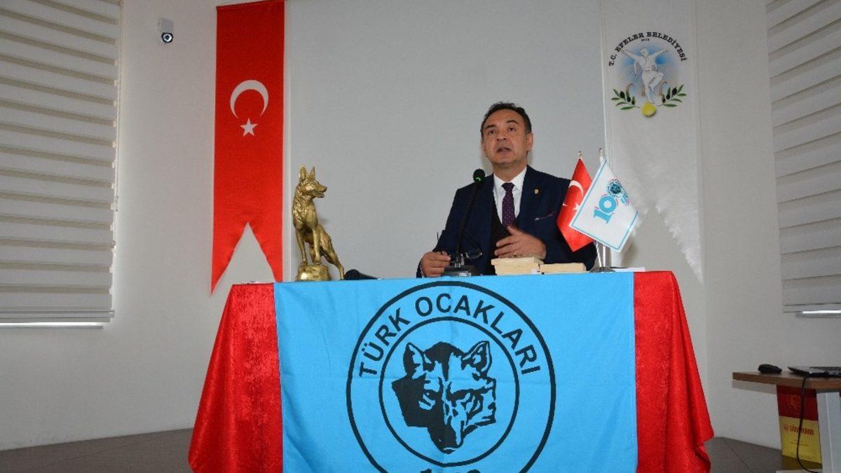 Efeler Belediye Başkanlığı süresince M. Mesut Özakcan ile iyi ilişkiler kurduklarını belirterek açılış konuşmasını yapan Türk Ocakları Aydın Şube Başkanı Dr. Eyüp Doyuran,” Bugüne kadar Gözpınar Şehitliği, Azerbaycan Bakü Parkı gibi milli konularda Efeler Belediyesi ile işbirliği yaptık. Sarıkamış Harekatı’nın bilinmeyen yönlerini öğrenmek adına düzenlediğimiz ‘Son Nefes’ adlı konferans için bizlere salonlarını açan Efeler Belediye Başkanımız M. Mesut Özakcan’a çok teşekkür ederim” ifadelerini kullandı.