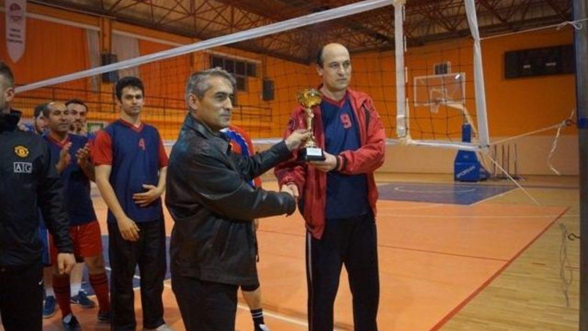 Kaymakam Zekeriya Güney, şampiyonluk kupasını takım kaptanı Öğretim Üyesi Savaş Akat'a verdi.