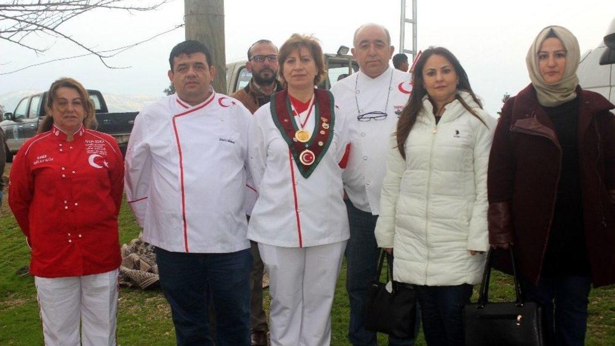 Yurdun çeşitli yerlerinde görev yapan 4 şef aşçı, Hatay’ın Suriye sınırına gelerek bu kez de üniformalarını Mehmetçik için giydi. Çeşitli STK üyelerinin de katıldığı ziyarette kurbanlar kesilerek şehit olan Mehmetçiklerin ruhuna gönderildi.İdealist Kadınlar Derneği(İGDER), bir çiğköfte firması ve 4 şef aşçı, İstanbul Platformu altında buluşarak Zeytin dalı harekatında görev yapan Mehmetçikleri Hatay-Suriye sınırında ziyaret etti. Hatay Hassa’daki Su Gediği köyünde buluşan platform üyeleri, harekatta şehit düşen Mehmetçikler için dualar eşliğinde kurban kesti. Kesilen kurbanlar, Akbaba Karakolu’nda görev yapan Mehmetçiklere dağıtıldı.“Şef olarak bir kez de üniformalarımızı Mehmetçiklerimiz için giyelim dedik”Ziyarete öncülük şef aşçı Fatma Bayrak, “Burası anlatılmaz. Buranın havasını mutlaka solumak lazım. Kendi meslektaşlarıma buraya gelmeleri için teklifte bulundum. Mehmetçiklerimize destek verelim. Şef olarak bir kez de üniformalarımızı Mehmetçiklerimiz için Zeytin dalı için giyelim dedik. Kurbanlarımızı aldık, kestik. Allah kabul etsin. Zeytin dalı harekatının en başından sonuna kadar yanındayız. Bu vatan topraklarında bir tane çakal kalmayana kadar devletimizin yanındayız“ dedi.