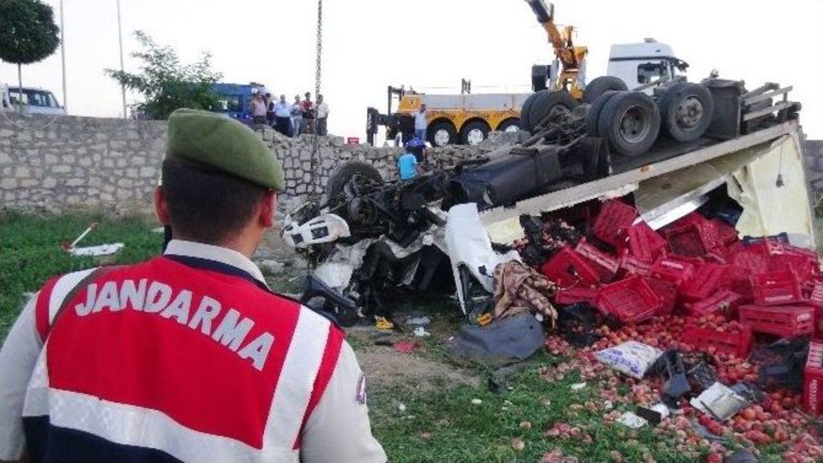 Aksaray’da şeftali yüklü kamyonun şarampole takla atması sonucu meydana gelen trafik kazasında 1 kişi hayatını kaybetti, 1 kişi ağır yaralandı.Kaza, Aksaray-Adana karayolunun 15’inci kilometresi Taşpınar beldesi yakınlarında meydana geldi. Edinilen bilgiye göre, Adana’dan Aksaray istikametine seyreden Necattin Bozkuş (56) idaresindeki 68 BA 427 plakalı kamyon, 15’inci kilometreye geldiğinde sürücünün direksiyon hakimiyetini kaybetmesi sonucu önce sağ tarafta bulunan petrolün totemine, ardından da ağaçlara çarparak şarampole takla attı. Kaza sonrası kamyonun kabini hurdaya dönerken, kabinde bulunan sürücü sıkıştığı koltukta hayatını kaybetti, yanında yolcu olarak bulunan Türkmenistan uyruklu Azad Ahmonov (20) ise ağır yaralandı. Yaralı yolcu olay yerine gelen 112 Acil Yardım ekiplerince ilk müdahalesi olay yerinde yapıldıktan sonra Aksaray Devlet Hastanesi’ne kaldırılarak tedavi altına alındı. Yaralının hayati tehlikesinin bulunduğu öğrenildi. Sıkışan sürücünün cesedi ise itfaiye ve AFAD ekiplerince çıkartıldı.Kazayla ilgili soruşturma başlatıldı.