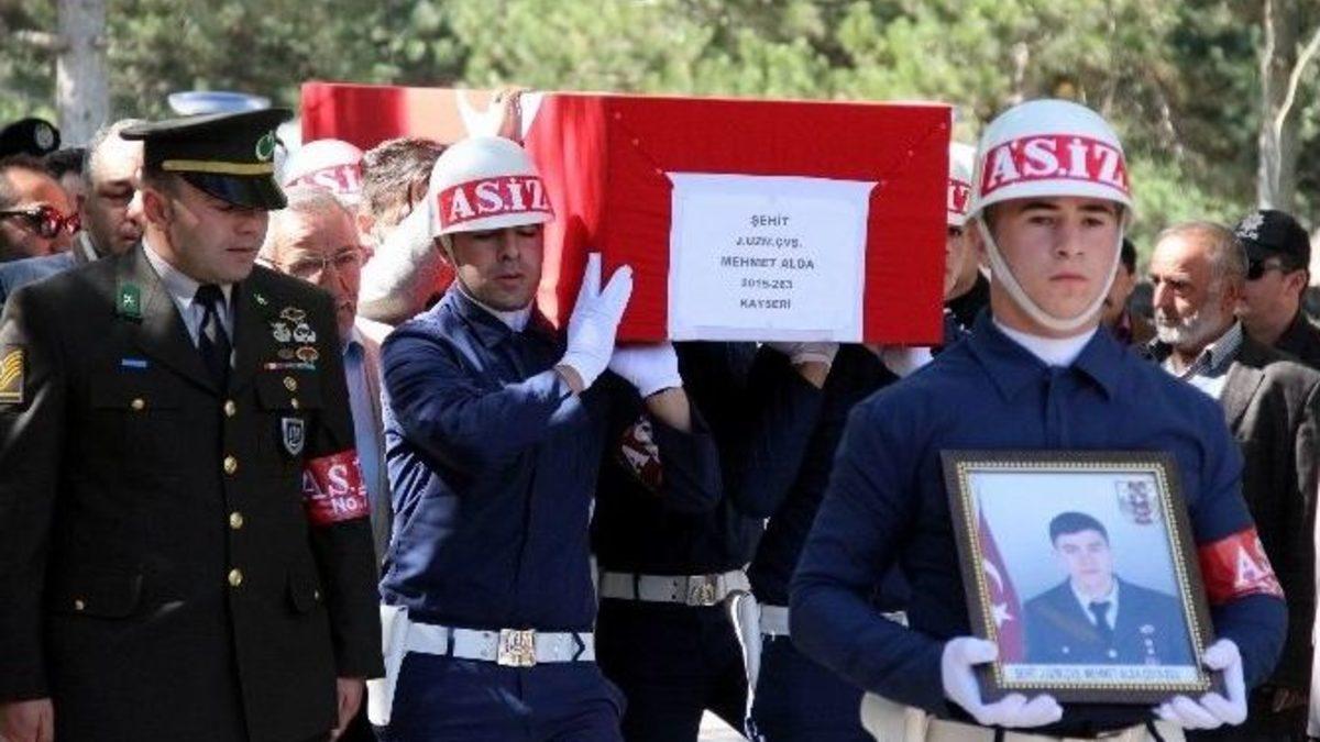 Şırnak-Van karayolunun güvenliğini sağlayan askerlere terör örgütü PKK’lı teröristlerce saldırılması sonucu şehit olan Jandarma Uzman Çavuş Mehmet Alda, memleketi Kayseri’de son yolculuğuna uğurlanıyor. Şehidin 20 günlük nişanlısı Aslı Ada, Türk bayrağına sarılı tabutuna sarılarak, "Hiçbir hayallerin yarım kalmayacak, seni çok seviyorum" diye gözyaşı döktü.Dün Şırnak - Van karayolunda güvenliği sağlayan askerlere terör örgütü PKK’lı teröristlerce saldırı düzenlenmiş, düzenlenen saldırıda Jandarma Uzman Çavuş Mehmet Alda şehit düşmüştü. Şehit Alda’nın cenazesi son yolculuğuna uğurlanmak üzere memleketi Kayseri’ye getirildi. Cenaze namazının kılınacağı Kalemkırdı Camii’ne getirilen şehit Alda’nın cenazesine yakınları sarılarak gözyaşı döktü.Şehidin 20 gün önce nişanlandığı öğrenilirken, nişanlısı Aslı Ada, şehidin Türk bayrağa sarılı tabutuna sarılarak gözyaşı döktü. Nişanlısının parkasını giyen Aslı Ada, "Hiçbir hayallerin yarım kalmayacak. Kalabalığı çok seviyordun, bak herkes burada. Seni çok seviyorum" diyerek gözyaşı döktü.Alda’nın cenazesi, Kalemkırdı Camii’nde öğle namazını müteakiben kılınacak cenaze namazının ardından Talas ilçesinde defnedilecek.