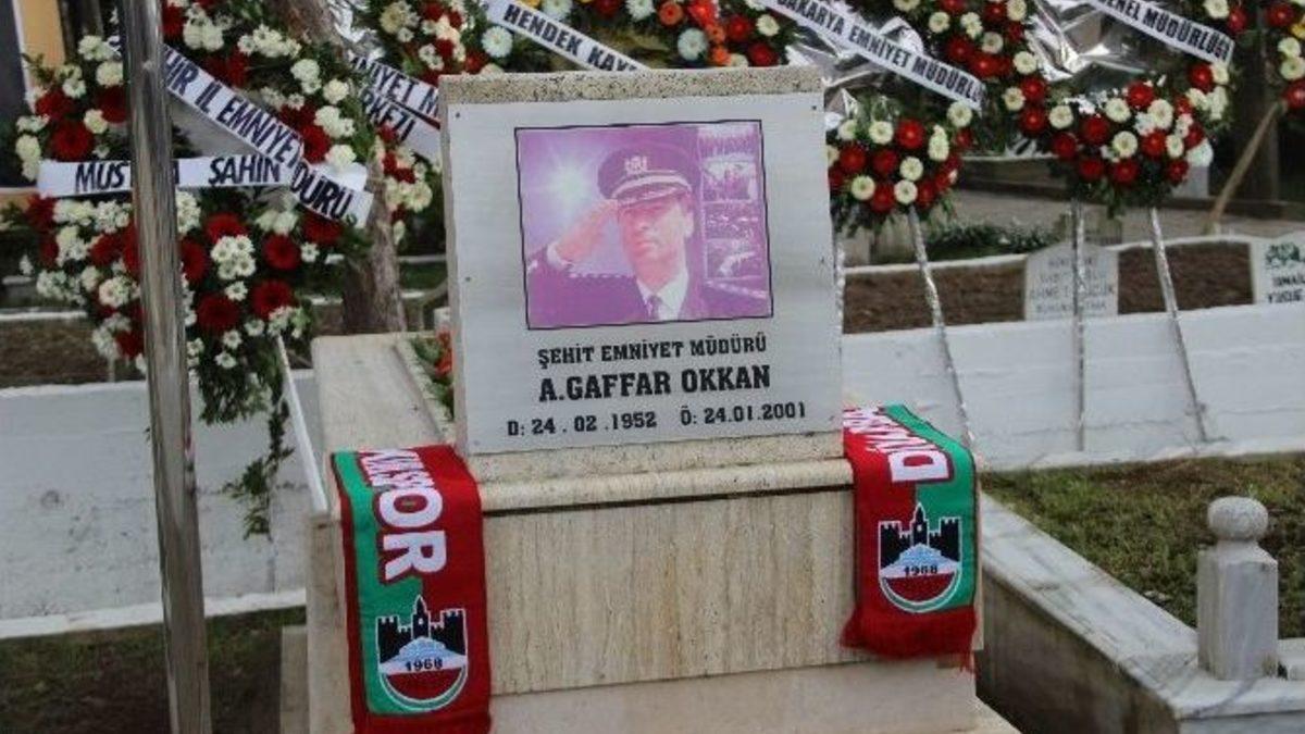 24 Ocak 2001’de uğradığı silahlı saldırı sonucu, 5 polis memuruyla birlikte şehit olan Diyarbakır eski Emniyet Müdürü Ali Gaffar Okkan için, Hendek ilçesindeki mezarı başında anma töreni düzenlendi. Diyarbakır’dan Hendek’e gelen Ali Gaffar isimli 10 çocuk, şehit Ali Gaffar Okkan’ın mezarını öperek onu çok sevdiklerini söyledi.Anma törenine, Ali Gaffar Okkan’ın eşi Zerrin Okkan, kızı ve ablası, Hendek Belediye Başkanı Ali İnci, Hendek Kaymakamı Mustafa Ayhan, Sakarya Emniyet Müdürü Osman Babadağı, eski emniyet müdürleri ve valiler, 102 Ali Gaffar Okkan isimli çocuk ve çok sayıda sevenleri katıldı. Zerrin Okkan, eşinin mezarına kızıyla birlikte aile bireylerini temsilen 5 karanfil bıraktı. Saygı duruşunda bulunulması ve İstiklal Marşı’nın okunmasının ardından, şehit Emniyet Müdürü Ali Gaffar Okkan’ın özgeçmişi okundu.Hendek Belediye Başkanı Ali İnci, “Şehidimizi vefatının 14. yıl dönümünde ve yine tam tazeliğiyle meydanda bir program yapıyoruz. Onu anıyoruz. Büyük bir sevgi bıraktı şehidimiz. Biz onu tekrar tekrar rahmetle anıyoruz. 2009 sonrası gördük ki Diyarbakır’da şehidimiz öldükten sonra Ali Gaffar ismi verilmiş çocuklar var. Ve dükkanlarında, mağazalarında, evlerinde Ali Gaffar Okkan’ın isimleri var. Hala var. Bunu görünce bize bir görev düştü. Hendek Belediye Başkanı olarak bir görev üstlendik. Dedik ki o zaman doğu ve batı arasındaki kardeşliğimizi, birliğimizi ve beraberliğimizi ortaya çıkarmamız lazım. Şu anda mezar başında 102 tane Gaffar Okkan’ımız var. Diyarbakır’dan buraya gelerek büyük bir sevgiyle Ali Gaffar Okkan’ın ismini büyük bir gururla, büyük bir onurla taşıyan gençlerimizi tebrik ediyorum” ifadelerini kullandı.Şehit Ali Gaffar Okkan’ı çok sevdiğini söyleyen ve mezarını öperek sevgisini gösteren 102 Ali Gaffar Okkan’dan bir genç, “Çok üzgünüz. Onu öldürdüler ve onu öldüren kişiler hala ortaya çıkmadı. Ali Gaffar Okkan, Kürtleri çok seviyordu. Kürtler de onu çok seviyordu” diyerek gözyaşlarına hakim olamadı.Konuşmalardan sonra Okkan için okunan duanın ardından, mezara sevenleri ve 102 Gaffar Okkan tarafından karanfil bırakıldı.