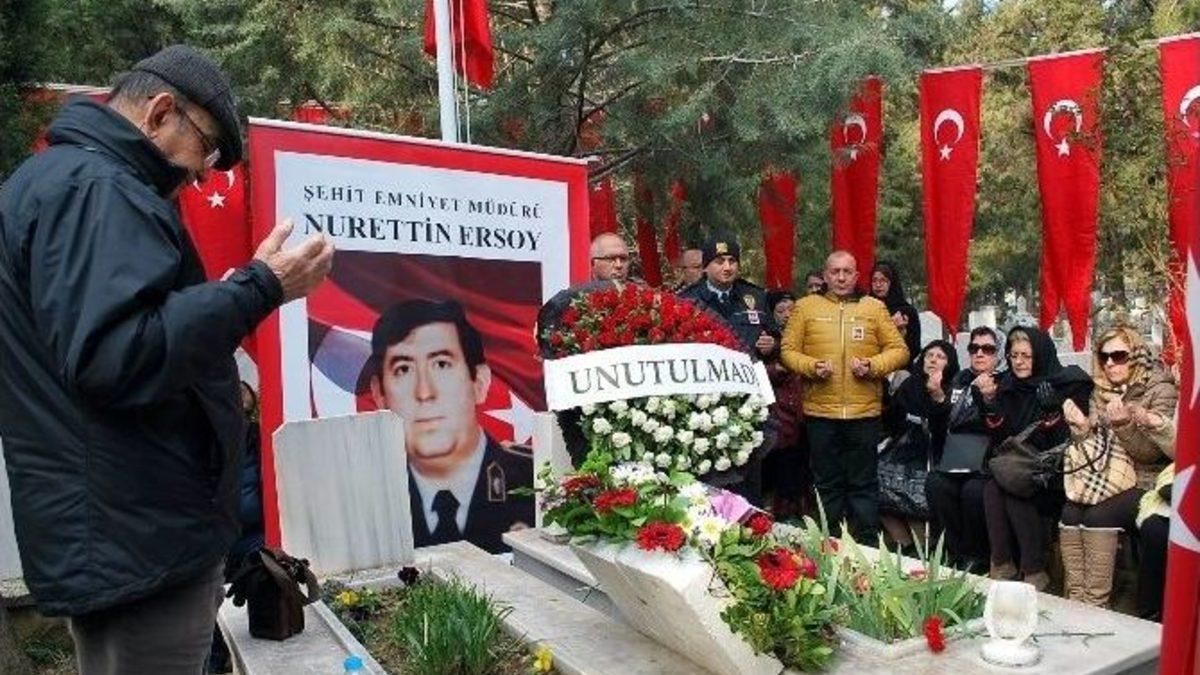 Nusaybin Emniyet Müdürlüğü görevindeyken 1996 yılında şehit olan Nurettin Ersoy, Manisa’nın Salihli ilçesinde mezarı başında dualarla anıldı.Mardin’in Nusaybin ilçesinde 1996 yılında düzenlenen bir operasyonda şehit düşen Emniyet Müdürü Nurettin Ersoy, ölümünün 21. yılında memleketi Salihli’de anıldı. Salihli Asri Mezarlığı’nda gerçekleştirilen anma törenine Kaymakam Turgut Çelenkoğlu, Belediye Başkan Yardımcısı Mahmut Süreyya Karaoğlu, İlçe Emniyet Müdürü Mehmet Taşcı, Manisa eski İl Emniyet Müdürü Adem Aydemir’in de aralarında bulunduğu emekli emniyet müdürleri, Salihli Huzurlu Yaşamı Destekleme Derneği Başkan Yardımcısı Cem Yalvaç ile Şehit Nurettin Ersoy’un eşi Çiğdem Ersoy, kızı Sinem Ersoy Tarhan ve damadı Mehmet Hakan Tarhan, kardeşi Nuran Öznehir ve Nurşen Varol, eniştesi emekli Emniyet Müdürü Ferdi Öznehir ile yakınları katıldı.Şehit Emniyet Müdürü Nurettin Ersoy’u şehit edilişinin 21. yılında mezarı başında dualarla andıklarını vurgulayan eniştesi emekli Emniyet Müdürü Ferdi Öznehir, “Korkusuz biriydi ve her zaman Atatürk ilkelerine bağlı biriydi. Bu vatan için canını seve seve verdi. Ailemizin ilk şehidi olan Nurettin Ersoy’un acısı ile 21 yıldır yaşıyoruz. Mekanı cennet olsun” dedi.Şehit Emniyet Müdürü Ersoy’un devre arkadaşı 1. Sınıf Emniyet Müdürü İsmail Çalışkan ise, “6 yıl birlikte okuduk. Ersoy, gözüpek, vatansever bir devremizdi. Bu vatan için bölücü terör örgütü ile çatışmadı şehit düştü. Yiğit kardeşim, rahat uyu, seni hiçbir zaman unutmayacağız” şeklinde konuştu.Anma törenine katılanlar Şehit Emniyet Müdürü Nurettin Ersoy’un mezarına çiçek bırakırken, anma töreni yapılan dua ile sona erdi.Asri Mezarlık önünde Şehit Emniyet Müdürü Nurettin Ersoy anısına lokma hayrı yapıldı.