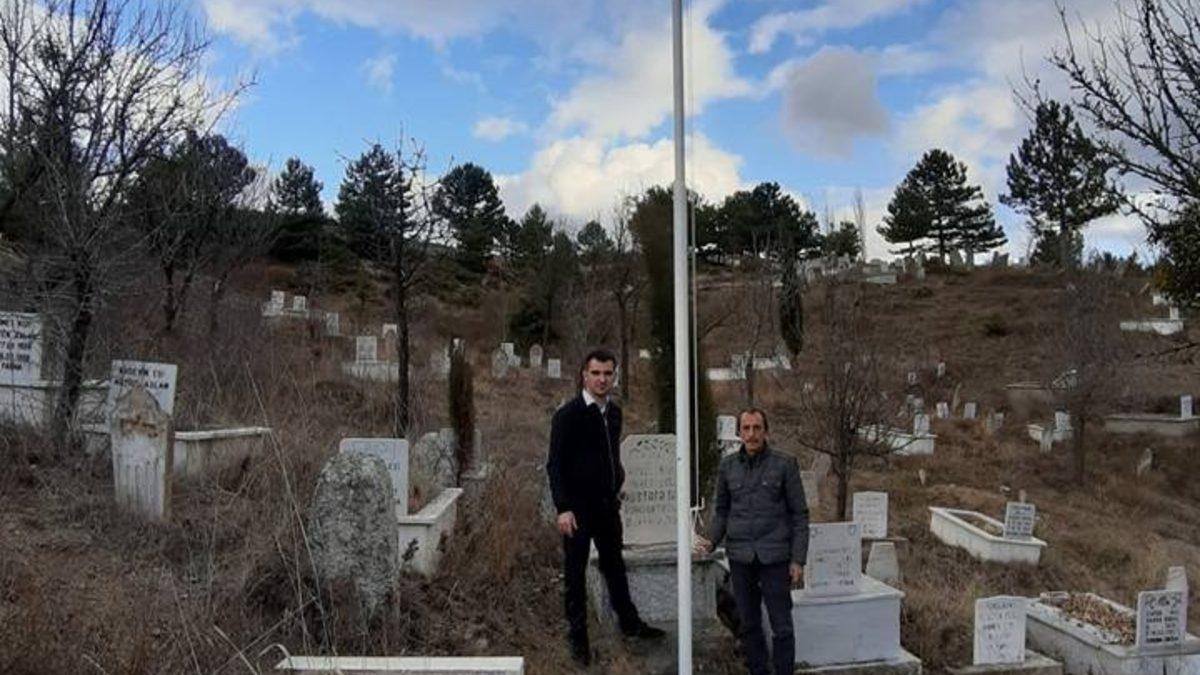 Kütahya’nın Emet ilçesi Gürpınar köyü mezarlığında bulunan şehit mezarına Türk bayrağı dikildi.
