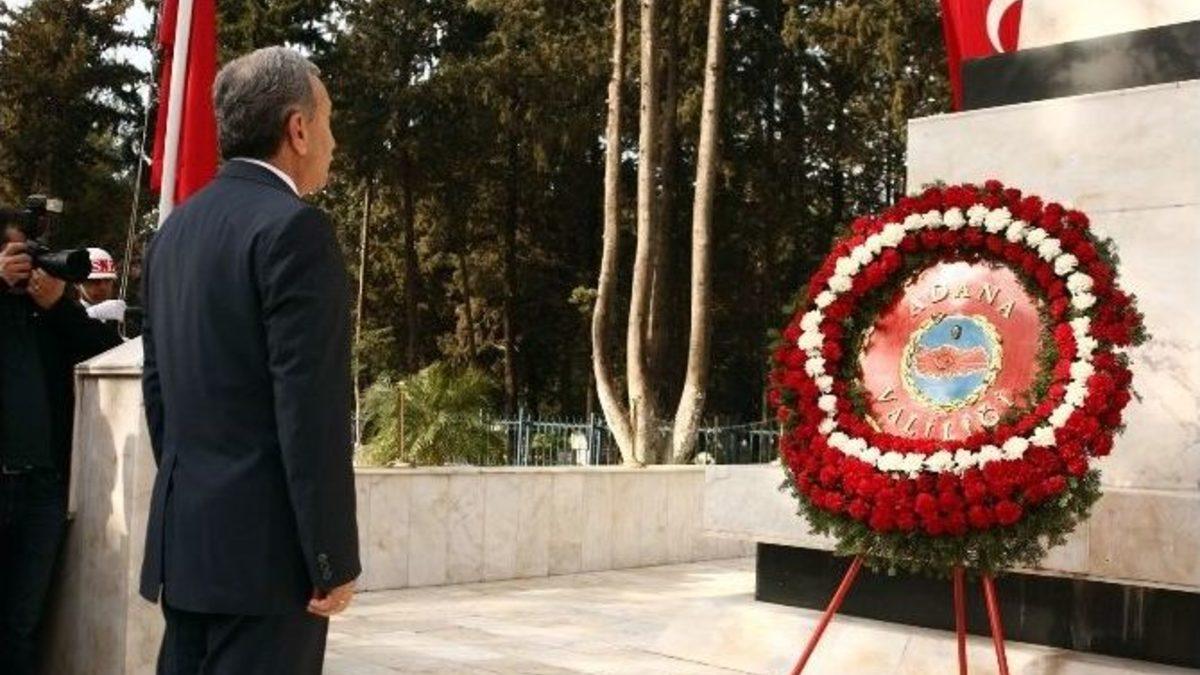 18 Mart Şehitleri Anma Günü ve Çanakkale Deniz Zaferi’nin 100. yıldönümü nedeniyle Asri Mezarlık’taki şehitlikte tören düzenlendi.Tören, Valilik, 6. Mekanize Piyade Tümen ve Garnizon Komutanlığı, Büyükşehir Belediye Başkanlığı ve Türkiye Harp Malulü Şehit Gaziler, Dul ve Yetimleri Derneği’ne ait çelenklerin Şehitlik Abidesi’ne konulmasıyla başladı.Şehitler için bir dakikalık saygı duruşunda bulunulması ve İstiklal Marşı’nın okunmasının ardından askerler tarafından saygı atışı yapıldı ve Türk Bayrağı göndere çekildi.Törende konuşan Türkiye Harp Malulü Gaziler Şehit Dul ve Yetimleri Derneği Adana Şube Başkanı Melahat Ongun, şehitlik mertebesinin Allah katında, peygamberlikten sonra en yüksek mertebe olduğunu belirterek şöyle konuştu:"Cennette onlar için sonsuz nimetler hazırlanmıştır. Kur’an, Allah yolunda öldürülenlerin, Allah’ın bağışını ve merhametini kazandıklarını bildirir. Çanakkale Savaşı millet olma bilincinin tohumlarının atılarak Kurtuluş Savaşı’nın kazanılmasına zemin hazırlayan bir prestij ve azmin mücadelesidir. Mukaddes vatan toprakları için canlarını seve seve vererek bir ulusun kaderini değiştiren, vatanımızı, istiklalimizi sarsılmaz imanları eşsiz cesaretlerine borçlu olduğumuz aziz şehitlerimiz dünyada eşi benzeri olmayan bir destan yazmıştır."Ongun’un konuşmasının ardından askeri üniforma giymiş Zeynep Sude Köksal isimli kız çocuğu, ’Bayrak’ şiirini seslendirdi. Daha sonra İl Müftüsü Arif Gökce, katılımcılarla birlikte şehitlerin ruhu için Kur’an-ı Kerim okuyup dua etti. Duaların ardından Vali Mustafa Büyük, şehit defterini imzaladı.Şehitlikteki mezarlara tek tek karanfil bırakan kent protokolü daha sonra şehit aileleriyle sohbet etti.