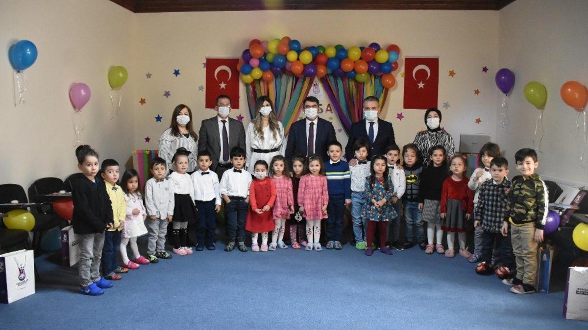 Şehzadeler Belediyesi Çocuk Kültür Sanat Merkezi ve Gündüz Bakım Evi’nde 3-4-5 ve 6 yaş sınıflarında eğitim gören 24 öğrenci ilk karnelerini, Şehzadeler Belediye Başkanı Ömer Faruk Çelik ve Başkan Yardımcısı Ahmet Songüler’in elinden aldı. Pandemi tedbirlerinin alınarak eğitimin verildiği Gündüz Bakım Evi’nde karne töreni de yine pandemi kurallarına uyularak yapıldı. Velilerin katılamadığı törende minikler karne sevinç ve heyecanlarına Başkan Çelik ve Başkan Yardımcısı Songüler’i ortak etti. Başkan Çelik ve beraberindekileri büyük bir coşku ile karşılayan minikler daha sonra karne ve hediyelerini büyük bir sevinç içinde aldı. Başkan Çelik ve Başkan Yardımcısı Songüler minik öğrenciler ile yakından ilgilenerek onlarla bol bol fotoğraf çektirdi.