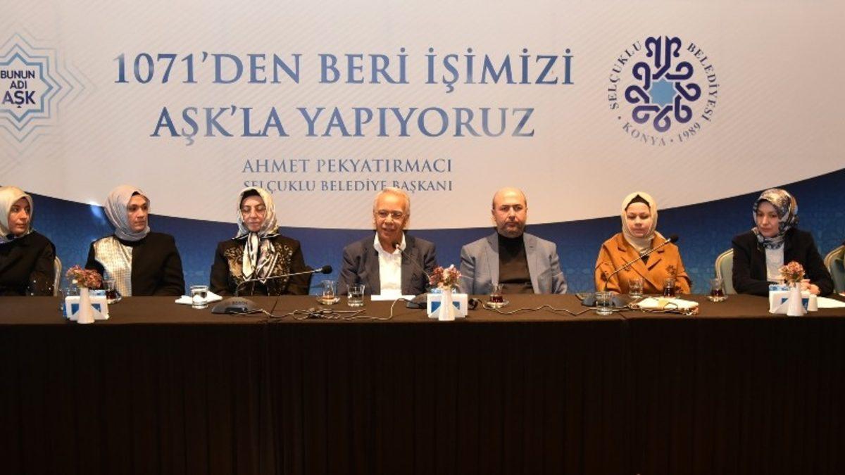 Toplantının açılış konuşmasını yapan Selçuklu Kent Konseyi Kadın Meclisi Başkanı Saliha Acar, “Kültürümüzde ailenin temeli kadındır. Kadın ailede her zaman eşinin yanında ve destekçisidir. Avrupa, Afrika ve Amerika’da köle kadınlar satılırken, bizim kültürümüzde kadınlar aile içinde söz sahibi olmuştur. Osmanlı’da kadının yeri bambaşka bir yerdeydi. Kurtuluş Savaşı’nda Cumhuriyetimizin kurulmasında Nene Hatunlar, Şerife Bacılar tarih sahnesinde kadınların erkeklerin yanında yer aldığını ve aynı görevde bir nefer gibi kurtuluş mücadelesi verdiklerine şahit olmaktayız” dedi.
