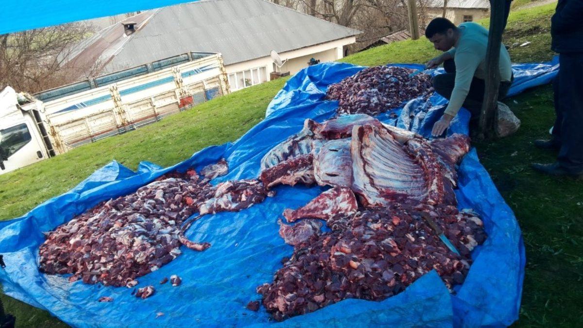 Hakkari’nin Şemdinli ilçesine bağlı Yaylapınar-Salaran köyünde korona virüsü salgınının def edilmesi için 4 büyükbaş hayvan kesilerek etleri ihtiyaç sahiplerine dağıtıldı.