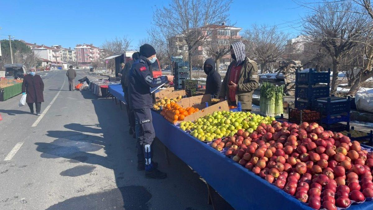 Ergene Belediyesi Zabıta Müdürlüğü ekipleri ilçenin değişik mahallelerinde kurulan pazar yerlerinde pandemiye karşı tedbir almaya devam ediyor.