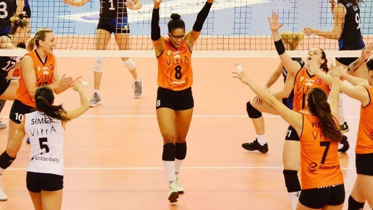 TVF Vestel Venüs Sultanlar Ligi’nde geçtiğimiz hafta deplasmanda İlbank’ı yenerek play-off hattına yükselen Seramiksan, evinde lig lideri Eczacıbaşı VitrA’ya 3-1 yenilmekten kurtulamadı.Yıldırım Beyazıt Spor Salonu’nda oynanan mücadelenin setleri 25-23, 19-25, 11-25, 21-25’lik skorlarla sonuçlandı. Bu sonuçla Seramiksan 22 puanda kalırken, Eczacıbaşı Vitra 57 puana yükseldi.Salon: Yıldırım BeyazıtHakemler: Arzu Emiroğlu, Fikret FidanSeramiksan: Sıla, Meryem, Bayramova, Sinem, Malasevic, Krsmanovic (Sedef (L), Rida, Mısra, Müge,Eczacıbaşı Vitra: Ezgi, Beyza, Boskovic, Hande, Adams, Larson (Dilara (L), Büşra, Gözde, Ognjenovic,Setler: 25-23, 19-25, 11-25, 21-25Süre: 97 dakika (27, 25, 20, 25)
