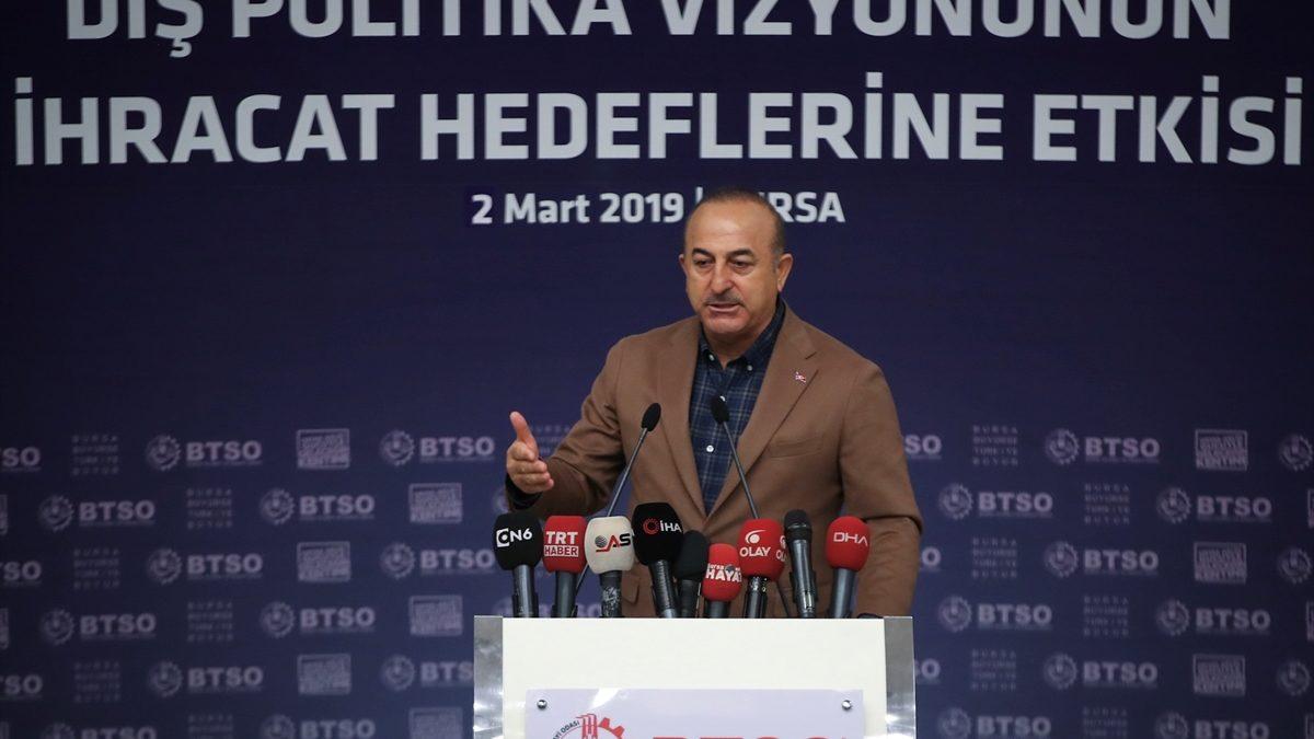 Çavuşoğlu, Bursa Ticaret ve Sanayi Odasında (BTSO) düzenlenen "Dış Politika Vizyonunun İhracat Hedeflerine Etkisi" konulu toplantıda yaptığı konuşmada, ticaretin önünün açılabilmesi için dünyanın her yerinde var olmak gerektiğini vurguladı.