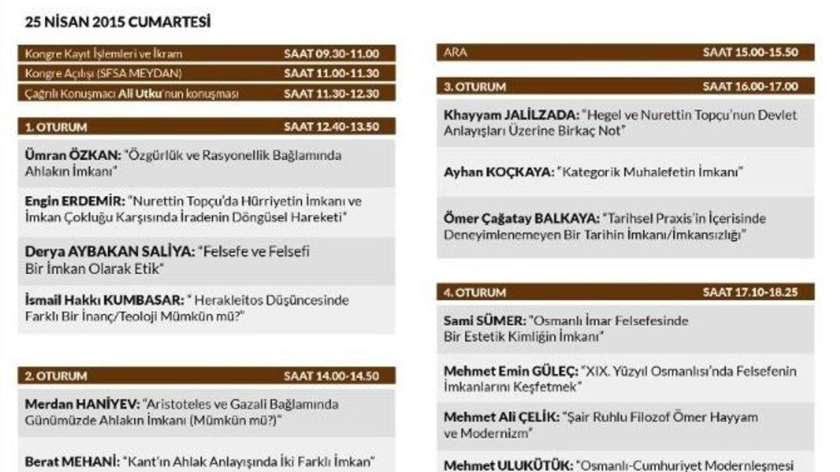 Serdivan Belediyesi Fikir ve Sanat Akademisi, Türkiye’nin farklı şehirlerinden gelen katılımcılar ile Ulusal Marmara Felsefe Kongresi düzenliyor.Serdivan Belediyesi Fikir ve Sanat Akademisi yerleşkesinde gerçekleşecek olan Ulusal Marmara Felsefe Kongresi’nde felsefenin imkanları konuşulacak. Kongreye ayrıca Atatürk Üniversitesi Felsefe Bölümü Öğretim Üyesi Ali Utku ve İstanbul Üniversitesi Türk İslam Düşüncesi Anabilim Dalı Öğretim Üyesi M. Cüneyt KAYA da çağrılı konuşmacı olarak katılacak.Kongre ile ilgili Serdivan Belediyesi Fikir ve Sanat Akademisi’nden yapılan açıklamada, sunumların alt başlıkları ise şu şekilde belirlendi; “Türkiye’de Felsefenin imkanı, Felsefe Tarihi ve Felsefe, Ahlak ve İmkan, Varlık ve İmkan, Estetik ve İmkan, Tarih Felsefesinin İmkanı ve Bilgi’nin imkanı”Serdivan Belediyesi Fikir ve Sanat Akademisi’nin düzenleyeceği kongrede ayrıca Türkiye’nin farklı üniversitelerinden gelen 35 yüksek lisans ve doktora öğrencisi de kendi tebliğlerini sunacak.Sunulan tebliğler, kongre sonrası Serdivan Belediyesi Fikir ve Sanat Akademisi’nin çıkartacağı Hakemli Dergisi’nde derlenecek ve yayınlanacak. 25 - 26 Nisan Cumartesi ve Pazar günü 8 farklı oturum ve 35 farklı sunum ile gerçekleştirilecek kongreyi tüm vatandaşların da takip edebileceği belirtilirken, kongrenin içeriği ile ilgili ayrıntılı bilginin www.fikirvesanat.org internet adresinden ve Serdivan Belediyesi Fikir ve Sanat Akademisi’nin 0 264 211 20 54 numaralı telefonundan alınabileceği belirtildi.
