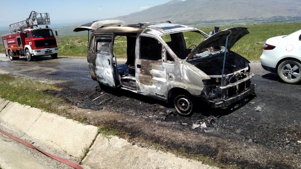 Van’ın Muradiye ilçesinde seyir halindeyken alev alan araç kullanılamaz hale geldi.