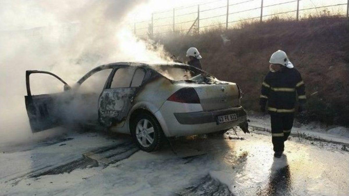 Kütahya’da seyir halindeki otomobil alevlere teslim olurken, sürücü kendisini son anda araçtan dışarıya atarak olaydan yara almadan kurtuldu.Olay, Kütahya-Eskişehir Karayolu’nun 38. kilometresindeki Sobran köyü yakınlarında meydana geldi.Edinilen bilgile göre, Ali Çiftçi yönetimindeki 43 PK 622 plakalı otomobil, seyir halindeyken aracın ön kısmını yanmaya başladı. Alevleri fark eden sürücü Ali Çiftçi, kendini güçlükle dışarıya atarken, söndürme çalışmaları için yoldaki sürücülerden yardım istedi. Bu arada, vatandaşların ihbarı üzerine kısa sürede olay yerine gelen itfaiye ekipleri, hızla söndürme çalışmalarına başladı.Söndürme çalışmaları sırasında yol kısa süreli araç trafiğine katıldı.Söndürülen otomobilde büyük hasır oluşurken, yangının elektrik aksamından çıktığı belirlendi. (EFE)
