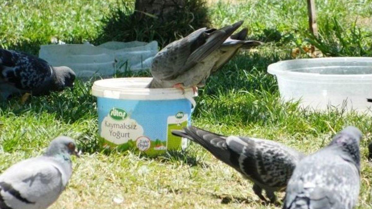 Son günlerde artan sıcaklar yaşlı ile çocuklar dışında Mudanya’nın simgeleri olan güvercinleri etkilemesi üzerine vatandaşlar kap kacak su ve yem taşıyarak hayvanlara destek oldu.Mudanyalı vatandaşların attıkları yem ve ekmek parçalarıyla karınlarını doyurmaya çalışan kuşlar ile güvercinler aşırı sıcaklardan bunalıyor. Hayvanların zaman zaman yere kapanarak aşırı sıcaklardan korunmaya çalıştıkları görülüyor. Durumu gören vatandaşların Mudanya'nın birçok noktasında kaplara su doldurarak güvercin ve diğer küçük kuşların, kedi ve köpeklerin su içmelerine yardımcı olarak aşırı sıcaklardan korunmalarını sağlıyor.