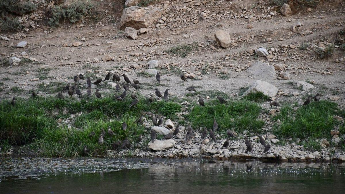 Beytüşşebap’ta aşırı sıcaklar nedeniyle dere kenarına inen yüzlerce kuş buz gibi sularda serinlemeye çalıştı. İlçeden geçen Habur Çayı ve Yeşilöz Deresindeki buz gibi sularda serinlemeye çalışan kuşlar dere kenarında toplanıp bir bir suya daldı.
