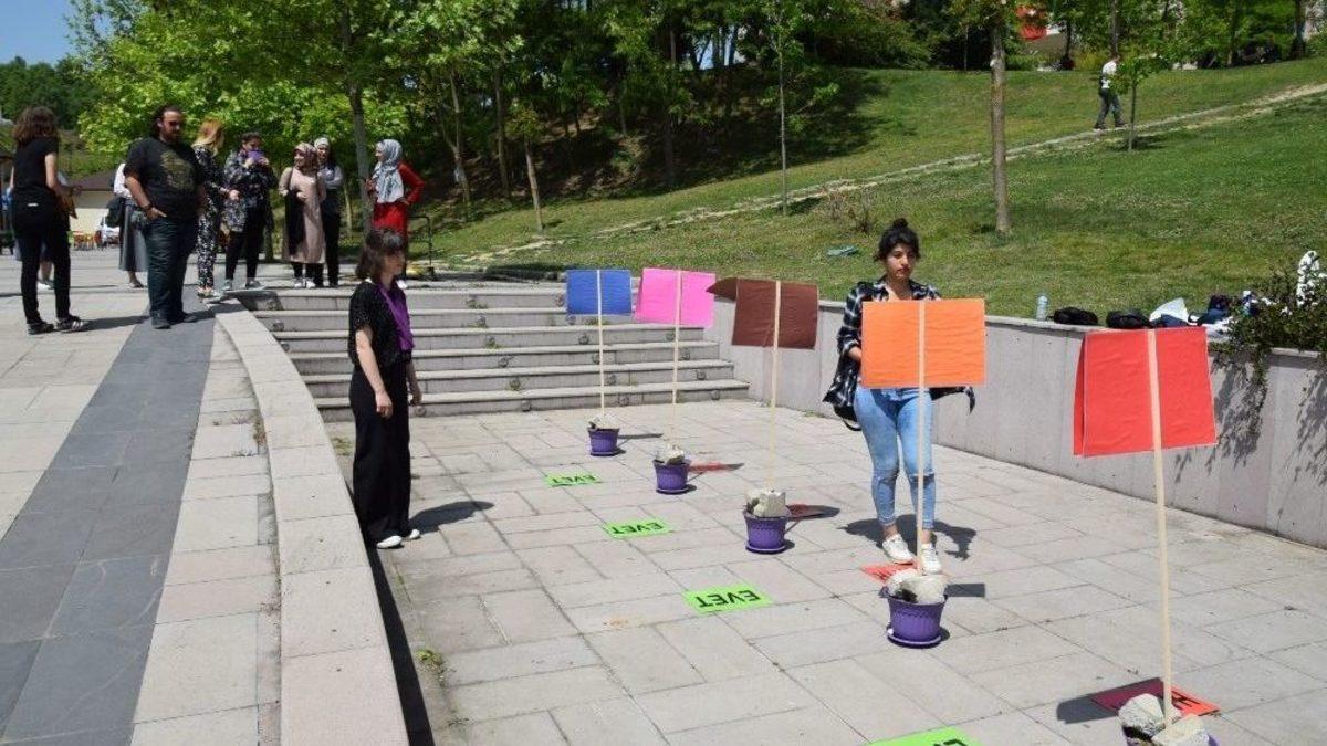 Düzce Üniversitesi Sağlık Bilimleri Fakültesi Sosyal Hizmet Bölümü öğrencileri, “Şiddet Geliyorum Der!” adlı sosyal sorumluluk projesiyle şiddetin her türlüsüne karşı farkındalık oluşturulması adına örnek bir etkinliğe imza attı.Sosyal Hizmet Bölümü öğrencileri; fiziksel, cinsel, psikolojik, dijital ve sosyal şiddete maruz kalan bireylere karşı toplumsal farkındalık geliştirmek amacıyla Düzce Üniversitesi 15 Temmuz Demokrasi Meydanı’nda bir parkur oluşturdu.Kendilerine sorulan soruları cevaplayarak parkurda ilerleyen öğrenciler, daha sonra içerisinde kırık ayna, cinayet haberleri, cansız manken ve ses sistemi olan bir kabine girdiler. Kabin çıkışında katılımcılara; şiddetle ilgili çeşitli soru ve cevapların yer aldığı bilgiler ile şiddete maruz kalma durumunda başvurulacak kurum ve iletişim bilgilerinin bulunduğu broşürler dağıtılarak katılımcıların şiddet konusunda bilinçlendirilmesi sağlandı.250 kişinin katılımıyla gerçekleştirilen etkinlik ile aile içi şiddetin başlangıcı olan flört şiddetine de dikkat çekilerek “Şiddetin Her Türlüsüne Dur!” mesajı verildi.
