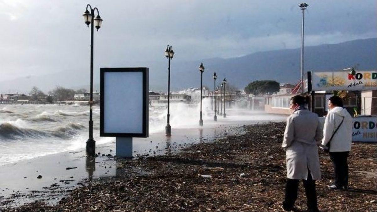 Ege Denizi’nden gelen şiddetli lodos, Balıkesir’in Edremit Körfezi’nde etkili oluyor.