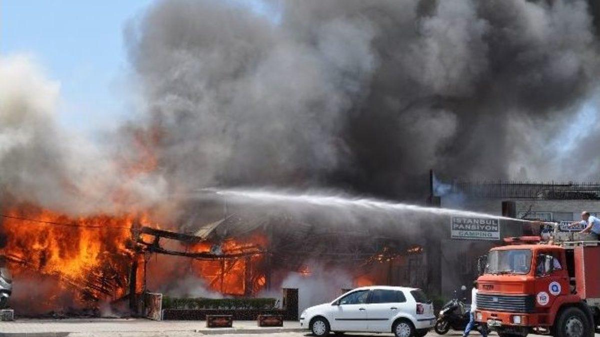 kiremit ve birleşik olması nedeniyle kısa sürede yan tarafta bulunan Ali Ercivan ile Hüseyin İnce’ye ait Rent a-carlara sıçradı. Yangın başladığı sırada Kirve Türkü Evi’nin üst katında 8-10 kişi bulunduğu ve yangının başlamasıyla birlikte bu kişilerin kendilerini dışarı attıkları ileri sürüldü. Kısa sürede yayılan yangın Antalya Büyükşehir Belediyesi itfaiyeleri, Manavgat Orman İşletme Müdürlüğü’ne bağlı Arazöz ve Manavgat belediyesi Park ve Bahçeler Müdürlüğüne bağlı su tankerleri müdahale etti. Ekiplerin tüm müdahalesine rağmen İbrahim Yıldırım’a ait Kirve Türkü evi, Ali Ercivan ile Hüseyin İnce’ye ait Rent a-carlar yandı. İşyeri sahipleri ve çok sayıda turist yangını korku içinde izledi.
