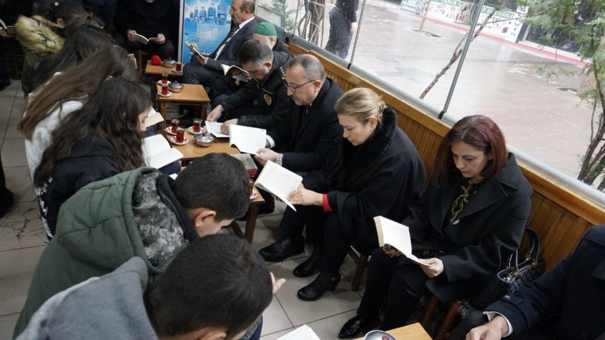 İl ve ilçeler olmak üzere 540 okulda kitap okunurken buna esnaf ve vatandaşlar da eşlik etti.