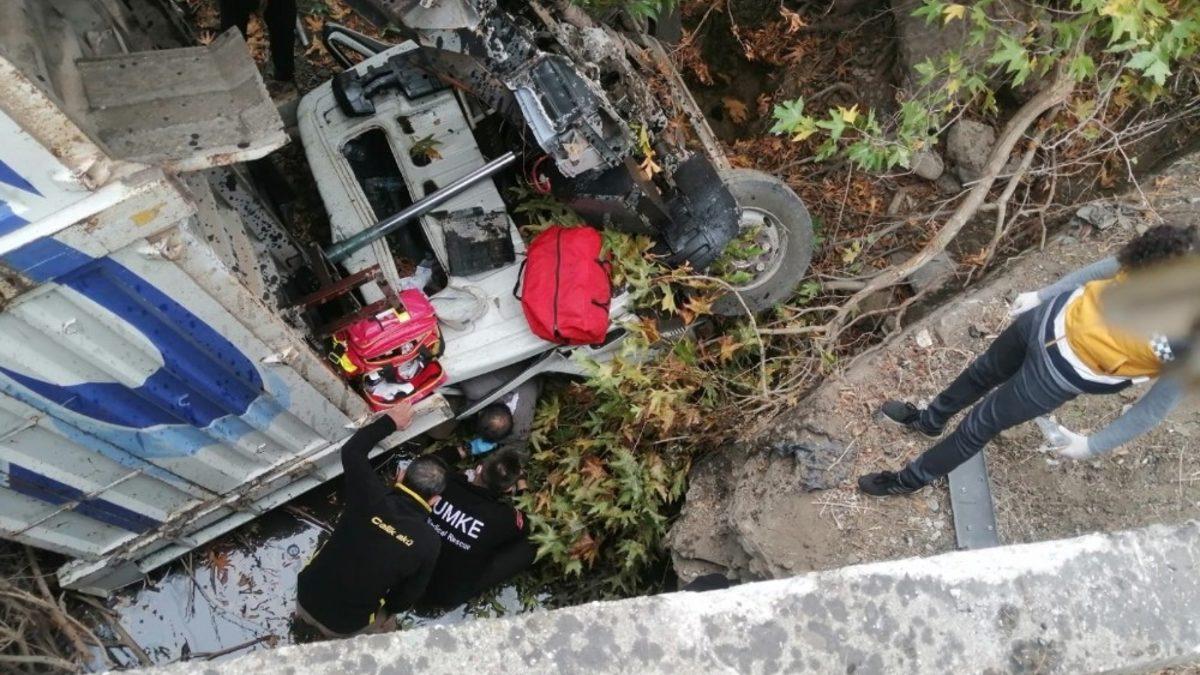 Siirt’te sürücüsünün direksiyon hakimiyetini kaybettiği kamyonun köprüden yuvarlanması sonucu 1 kişi yaralandı.