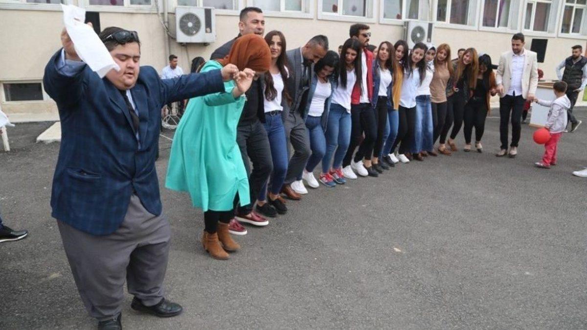 Şırnak’ın Silopi ilçesindeki Meslek Yüksek Okulu’nun bu yıl 2’ncisini düzenlediği etkinlikte Down sendromlu çocuklar, müzik eşliğinde dans edip, halay çekti.Silopi Meslek Yüksekokulu’nun bu yıl ikincisi düzenlediği etkinliğe Şırnak Üniversitesi Rektörü Prof. Dr. Mehmet Emin Erkan, Silopi İlçe Milli Eğitim Müdürü Bülent Dayanan, Müstakil Sanayici ve İşadamları Derneği Şırnak Temsilcisi Yusuf Bilin, AK Parti Silopi İlçe Başkanı Fatih Bilen, öğretim görevlileri, öğrenciler ve rehabilitasyon merkezine bağlı öğrenciler katıldı. Etkinlikte bir konuşma yapan Şırnak Üniversitesi Rektörü Prof. Dr. Mehmet Emin Erkan, herkesin bir gün engelli olabileceğini belirterek, engellilerin kıymetinin bilinmesi gerektiğini söyledi. Konuşmaların ardından Down sendromlu öğrencilere oyuncak hediye edildi. Meslek Yüksekokulu’na katkıda bulunan ve etkinlikte emeği geçenlere de plaket takdimi yapıldı.Etkinlik daha sonra canlı müzik eşliğinde dans ve halaylar ile devam etti. Şenlikte pamuk prenses, Noel baba ve palyaço kostümleri giyen üniversite öğrencileri Down sendromlu çocukları eğlendirdi. Müzik korosunun da çeşitli parçaları seslendiği etkinlikte eğlenceli vakit geçiren çocuklara, çiğ köfte ve kuru pasta ikramı yapıldı. Bu yılki etkinlikte, Silopi İlçe Gençlik Spor Hizmetleri ve Spor İlçe Müdürlüğünün mobil gençlik merkezi aracı çocuklara oyun oynama imkanı sağladı. Silopi İlçe Sağlık Müdürlüğüne bağlı sağlık ekipleri de Down sendromlu çocukları diş taramasından geçirerek içerisinde diş fırçası ve diş macunu olan çantayı hediye etti.Silopi Meslek Yüksekokulu öğrencisi Emine Demir, Down sendromlu çocuklar için eğlence düzenlediklerini belirterek, "Onlara moral ve eğlence olsun istedik. Bize de moral ve eğlence oldu. Onları mutlu görmek bizi de sevindirdi. Her bir öğrenci bir Down sendromlu çocuk ile ilgilenmesi için görev aldı" dedi.Geleneksel hale getirdikleri Down sendromu etkinliğinin bu yıl ikincisini gerçekleştirdiklerini anlatan Silopi Meslek Yüksekokulu Öğretim görevlisi Atilla Ünlü, "Amacımız Down sendroumlu öğrencileri üniversitemize kanalize etmekti. Bu şekilde hem bir farkındalık yaratmak hem de onlarla güzel dakikalar geçirmeyi hedefledik" diye konuştu.