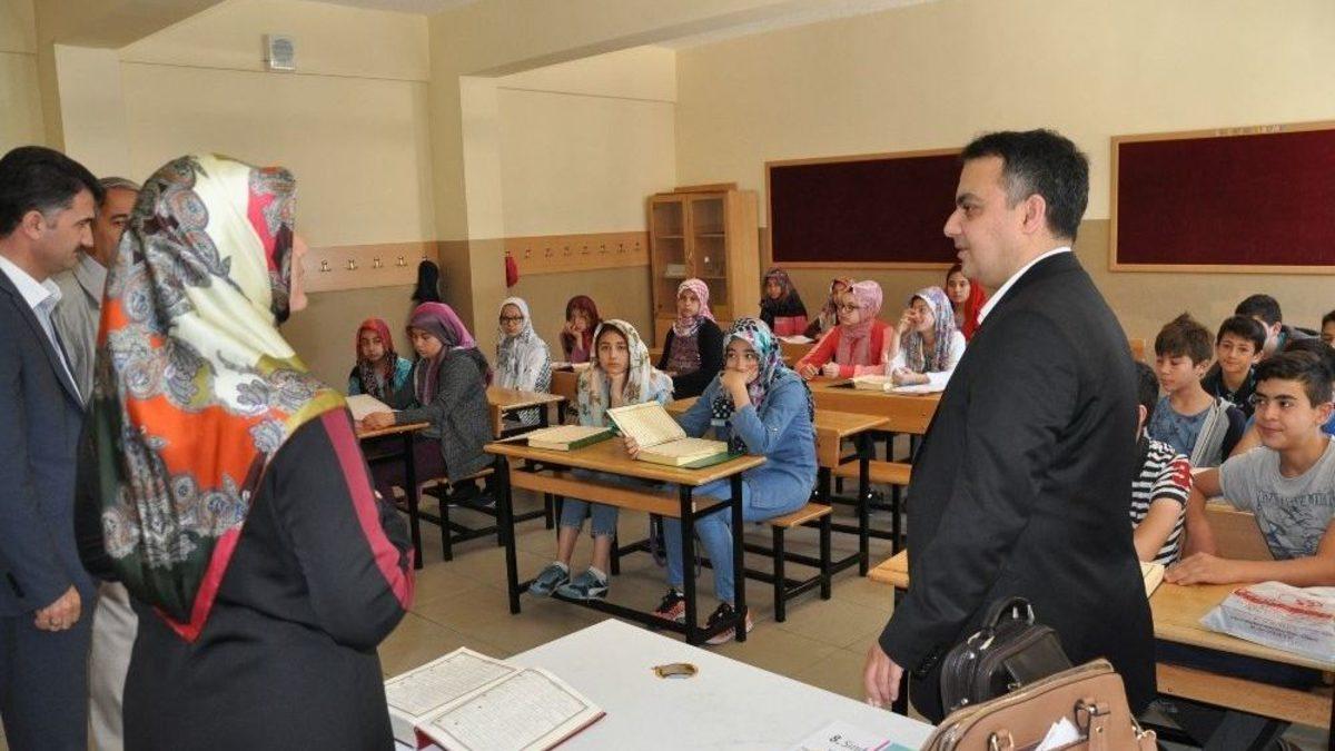 Kütahya’nın Simav ilçesinde, İlçe Milli Eğitim Müdürlüğü ile İlçe Müftülüğü işbirliğiyle, Yaz Kur’an kurslarını okullarda uygulayan Simav Müftülüğü Din Eğitimi görevlileri, 8’inci sınıf öğrencilerini TEOG sınavlarına hazırlıyor.3 yıldır uygulanan programı yakından takip ettiğini belirten Simav Kaymakamı Türker Çağatay Halim, Bu yıl Osmanbey Ortaokulunda başlatılan kursları yerinde inceledi. 250 öğrencinin kaydı ile başlatılan kurs öğrencileri sohbet eden Kaymakam Halim, Öğrencilerin kurslara olan ilgi ve memnuniyetinin sevindirici olduğunu söyledi. Halim, “İlçe Müftülüğümüz ve İlçe Milli Eğitim Müdürlüğü eğitim görevlilerini ve idarecilerini tebrik ediyorum“ dedi.Osmanbey Ortaokulundan 8’inci sınıfa geçen kursiyer öğrenci Damla Işık, “Kur’an Kursları başladığında ilk amacım TEOG sınıflarında yer almaktı, geçen sene bu kurslara katılan arkadaşlarımın başarılı olduklarını gördüm, hocama güveniyorum. Üç yıldan bu yana devam eden bu kurslarda ben de Din Kültürü ve Ahlak Bilgisi dersinden başarılı olacağıma inanıyorum “ dedi. Kursiyer öğrencilerden Nursena Kaymaz, “3 yıldan bu yana devam eden bu kurslarda başarılı sonuçlar elde ediliyor, Türkiye’de bir ilk’e imza attık, bu yüzden çok mutluyum, TEOG sınavında inşallah yüzde yüz başarılı olacağım“ diye konuştu.Simav İlçe Müftülüğünün İlahiyat mezunu Kur’an kursu görevlisi Ayşe Türköz, 3 seneden bu yana uyguladıkları, özel TEOG sınıfı çalışmalarında bu yıl da yüzde yüz başarı elde edeceklerine inandıklarını ve öğrencilerine de güvendiğini ifade etti. Simav İlçe Müftüsü İbrahim Yavuz, Diyanet İşleri Başkanlığı’nın belirlediği tarihler çerçevesinde, 12 Haziran tarihi itibariyle Müftülüğümüze bağlı tüm cami ve Kur’an kurslarımızda, yaz Kur’an kurslarımızı başlattık. 3 yıl önce programladığımız TEOG sınıfı uygulaması bu yıl da devam ediyor. 7’inci sınıftan 8’inci sınıfa geçen öğrencilerimize, yaz Kur’an kursu müfredatının dışında 8’inci sınıf Din Kültürü ve Ahlak Bilgisi konuları, din görevlilerimiz tarafından anlatılıyor. Bunun bir ihtiyaç olduğunu, velilerimizin son derece memnun olduklarını gördük, bu yıl da devam ettiriyoruz. 8’inci sınıf öğrencilerimizden bir çoğu, TEOG sınavında Din Kültürü ve Ahlak Bilgisi sorularının tamamını doğru cevaplamaktadır, bu da bizi son derece mutlu ve bahtiyar kılmaktadır “ ifatelerini kullandı.Yaz Kur’an Kursunun TEOG sınıfı öğrencileri, ’TEOG’da yüzde yüz başarı’ sloganı ile söz verdiler.