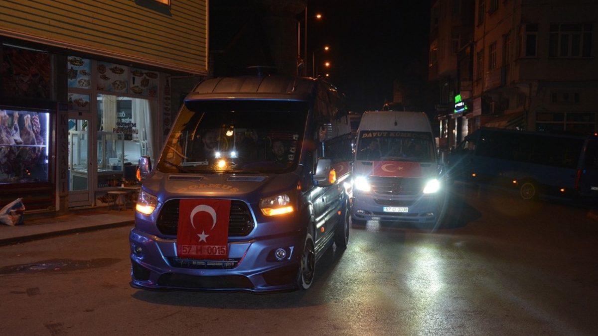 Suriye’nin İdlib kentinde şehit olan Mehmetçikleri anmak için Sinop’ta vatandaşlar araçlarıyla konvoy oluşturdu.