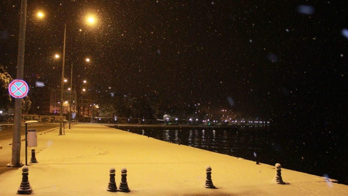 Sinop’ta dün etkili olan kar yağışı ilk anda şehir merkezinde birikmeye neden olmamıştı. Yağışın gece saatlerinde de devam etmesiyle şehir merkezi de beyaz örtüyle buluştu. Gece saatlerinde yağan kar şehrin ışıklarıyla birleşince güzel görüntüler ortaya çıktı. Sahil kesimi karla kaplandı. Yürüyüş yolları, bitki örtüsü ve tarihi eserler kar güzelliğiyle bir araya geldi.