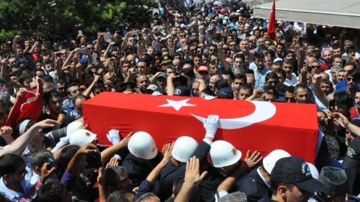 Şırnak’ın Silopi ilçesinde PKK’nın düzenlediği saldırıda ağır yaralanan ve daha sonra kaldırıldığı hastanede şehit olan polis memuru Muhammet Onur Demir’in cenazesi gözyaşları içinde son yolculuğuna uğurlandı.Silopi’de PKK yandaşlarınca açılan hendekleri kapatmak için yapılan operasyon sırasında teröristlerin roketatar ve uzun namlulu silahlı saldırısında ağır yaralanan ve sevk edildiği Batman’da şehit olan Muhammet Onur Demir’in (24) cenazesi dün akşam Diyarbakır’dan askeri uçakla memleketi Sivas’a getirildi.Sakarya İl Emniyet Müdürlüğü’nde göreve başlayan ve daha sonra Şırnak’ın Silopi ilçesine atanan şehit polis memuru Demir için bugün Sivas İl Emniyet Müdürlüğü bahçesinde resmi tören düzenlendi. Törenin ardından şehidin cenazesi polis mangasının omuzlarında Ulu Cami’ne getirildi.ON BİNLER ŞEHİDİNİ TEKBİRLERLE UĞURLADIUlu Cami’nde düzenlenen cenaze törenine TBMM Başkanı İsmet Yılmaz, Sivas Valisi Alim Barut, AK Parti Genel Başkan Yardımcısı Ekrem Erdem, AK Parti Sivas Milletvekili Hilmi Bilgin, MHP Sivas Milletvekili Celal Dağgez, CHP Sivas Milletvekili Ali Akyıldız, şehidin yakınları, emniyet teşkilatı, askeri erkan ve binlerce vatandaş katıldı. Helallik alındıktan sonra İl Müftüsü Recep Şükrü Balkan’ın kıldırdığı cenaze namazının ardından şehit polis tekbirler eşliğinde cenaze aracına konuldu. Vatandaşlar cenaze aracıyla birlikte Yukarı Tekke Mezarlığı’na kadar tekbirler eşliğinde yürüyüş yaptı.Şehit polisin cenazesi Yukarı Tekke Mezarlığı’nda bulunan polis şehitliğinde gözyaşı dualarla son yolculuğuna uğurlandı.