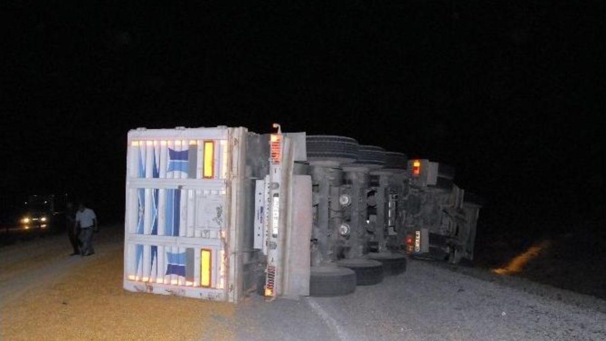 Şanlıurfa’nın Siverek ilçesinde mısır yüklü TIR’ın devrilmesi sonucu 2 kişi yaralandı.Edinilen bilgilere göre, Diyarbakır istikametinden Siverek istikametine doğru gelmekte olan Sadun Hizol idaresindeki 27 U 6181 plakalı TIR, Siverek- Diyarbakır karayolunun 10. kilometresinde sürücünün direksiyon hakimiyetini kaybetmesi sonucunda devrildi. Devrilen TIR’ın dorsesinde bulunan mısır yola savruldu. Savrulan mısır karayolunun her iki şeridine dağıldı. Kazanın meydana geldiği noktada karşı şeritte Diyarbakır istikametine gitmekte olan Engin Güven idaresindeki 01 B 3868 plakalı araç kayarak karşı yola geçip şarampole yuvarlandı. Kazada TIR sürücüsü Sadun Hizol ve Otomobil sürücüsü Engin Güven yaralandı.Kazayı gören diğer sürücüler ise durumu 112 ekiplerine bildirdi. Olay yerine gelen sağlık ekipleri yaralıları ambulanslarla Siverek Devlet Hastanesine kaldırıldı. Güvenlik ekipleri ve karayollarına bağlı ekipleri trafik akışını her iki şeritte kontrollü sağlarken, yola savrulan mısırı temizleme çalışmalarına başlandı. Kazayla ilgili soruşturma başlatıldı.