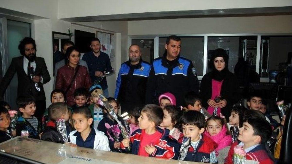 Şanlıurfa’nın Siverek ilçesinde 10 Nisan Polis Haftası kapsamında ana okulu öğrencileri İlçe Emniyet Müdürlüğünü ziyaret etti.10 Nisan Polis Haftası kapsamında Zübeyde Hanım Ana Okulu öğrencileri İlçe Emniyet Müdürlüğünü ziyaret etti. Ziyarette polislere gül hediye eden öğrenciler, polislere "Güvende yaşamamızın sebebi olduğunuz için hepinize teşekkür ederiz" dedi.Öğrenciler, polis merkezinde bulunan birimleri ve son olarak Siverek İlçe Emniyet Müdürü İbrahim Arpacı’ya gül hediye edip polis haftasını kutladı.İlçe Emniyet Müdürü Arpacı yaptığı açıklamada, "Öğrencilerimizin bu ziyareti bizi çok mutlu etti.Bu ziyaretlerinden dolayı öğrencilerimize ve buna vesile olan öğretmenlerimize teşekkür ediyoruz" dedi.Öğrencilere uçurtma,düdük ve polis bayrağı hediye edildikten sonra öğrenciler polis aracı ile okullarına döndü.