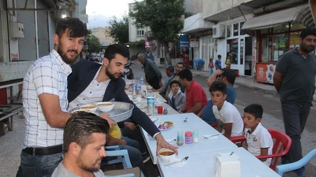 Gaziantep’in Yavuzeli ilçesinde esnaflar, sokak ortasında kurdukları iftar sofrasında gençlerle buluştu.Yavuzeli ilçesi esnafı sokak İnönü Caddesinde yaklaşık 15 masalık iftar sofrası kurdu. İlçedeki gençlerle bir araya gelen esnaf, eski Ramazanlar’da ki gibi birlikte iftar yapmanın tadın çıkardı. Yaklaşık 60 kişinin katıldığı iftar programının bu yıl 4.sü düzenlendi. İftar öncesi kısa bir konuşma yapan esnaflardan Selahattin Bakır, "İftar programını Cebrail Bakır, Davut Kaya, Cebrail Azar ve İlyas Çiftçi isimli esnaf arkadaşlarımız tarafından düzenlendi. Bir araya gelmenin, birlik ve beraberlik adına buluşmanın mutluluğu içerisindeyiz. Barışın, huzurun ve kardeşliğin pekiştiği, öne çıktığı Ramazan aylarında önceki yıllarda olduğu bugünde birlikte iftar yapmanın memnuniyetini duyuyoruz. Gençlerimizin de aramızda bulunması, yoğun ilgi göstermeleri, bizleri daha da sevindirmiştir. Bu birlik ve beraberliğimiz hiçbir zaman bozulmasın temennisinde bulunuyorum" dedi.
