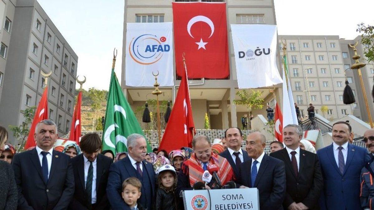 Manisa’nın Soma ilçesinde, 301 işçinin yaşamını yitirdiği maden faciası sonrasında şehit madencilerin yakınları için 1,5 yılda yapımı tamamlanan 301 konut, Soma ilçesinde düzenlenen törenle Başbakan Yardımcısı Recep Akdağ’ın katılımıyla hak sahiplerine teslim edildi. Törene, Cumhurbaşkanı Recep Tayyip Erdoğan da telekonferans yöntemiyle bağlandı.Soma ilçesinde, 13 Mayıs 2014 tarihinde meydana gelen ve 301 işçinin yaşamını yitirdiği maden faciasının ardından, Doğuş Holding madenci yakınları için 301 konut projesini hayata geçirmişti. Proje 1.5 yılda tamamlanırken, teslim içinde bir tören düzenlendi. Törene, Manisa’da bulunan Cumhurbaşkanı Recep Tayyip Erdoğan da telekonferans yöntemiyle katıldı. Başbakan Yardımcısı Recep Akdağ, "Doğuş Holding’in Soma şehitlerinin yakınları için yaptırdığı konutların yanındayız. 301+5 konut bulunuyor. 301’i aileler için diğer 5’i burada çalışanlar için. Okulu, camisi, parkları ve bütün sosyal donatı alanlarıyla burada mükemmel bir yerleşim alanı oluşturulmuş durumda. Bütün aileler adına hem Cumhurbaşkanımıza hem de Doğuş Holding’e teşekkür ediyorum" ifadelerini kullandı.Başbakan Yardımcısı Akdağ, maden şehidi yakınları ile yakından ilgilenirken, aileler de Akdağ’a ilgilerinden ötürü teşekkür etti.Ardından açılışı yapılan konutların anahtarları Başbakan Yaardımcısı Recep Akdağ ve protokol tarafından tek tek ailelere teslim edildi. Düzenlenen programa, AK Parti Manisa Milletvekili Recai Berber’in yanı sıra Doğuş Holding CEO’su Hüsnü Akhan, Soma Kaymakamı Ahmet Altıntaş, Belediye Başkanı Hasan Ergene ile maden şehidi yakınları ve vatandaşlar katıldı.
