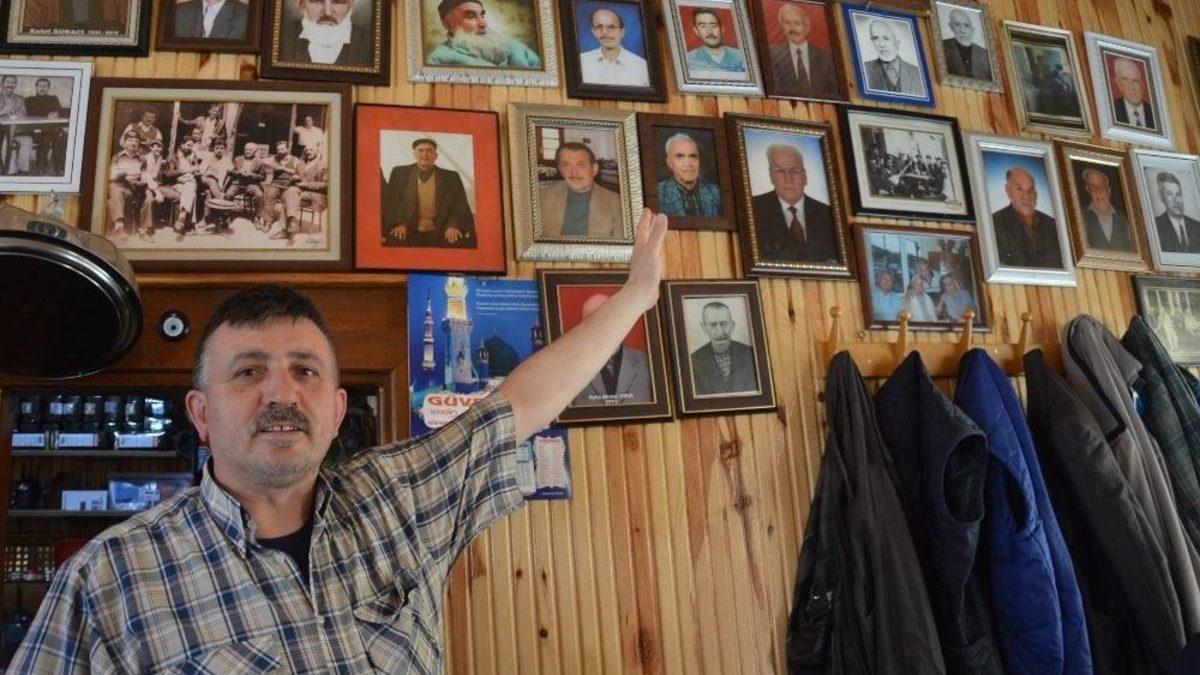 Tokat’ın Niksar ilçesinde yarım asırdan fazla hizmet veren ’Son Durak’ kahvehanesi işletmecisi Mustafa Köksalan, vefat eden müşterilerinin fotoğraflarını yaklaşık 30 yıldır işyerinin duvarında sergiliyor.Kahvehaneye gelen müşterilerinin, fotoğraflarda kendi yakınlarını gördüğünde anılarının tazelendiğini söyleyen Köksalan, "1990 yılından bu yana iş yerimizin duvarında vefat eden müşterilerimizin fotoğrafını sergiliyoruz. İş yerimize gelen müşteriler, bu fotoğrafları görünce eskileri hatırlatıyor. Fotoğraf içerisinde müşterilerimizin tanıdığı, akrabaları oluyor ve geçmişi yad ediyorlar" dedi.Köksalan, "Burası Danişmendliler zamanından gelen tarihi Arasta Çarşısı içerisinde bulunan eski ismi istirahat hane olan bir yer. Bizde babadan 1960 yılından bu yana bu işletmeyi çalıştırıyoruz. Niksar’ın Danişmendlilerden eski dönemden geldiğinde dolayı Arasta Cami’inin vakfı olduğundan dolayı insanların namazını kılıp daha sonra istirahat ettikleri bir yer burası. Yani eski ismi istirahathane, son ismi ise ’son durak’ kahvesi olarak biliniyor. Burası babadan kalma olduğu için baba mesleğine devam ediyoruz. Son durak kahvesi olmasının bir sebebi bizim kahvemizde herhangi bir oyun oynanmamasıdır, buraya gelen bizim kendi müşterilerimizdir. Camide namazını kılanlar daha sonra hemen buraya gelirler. Ölüp bu dünyayı terk ettikleri için ve geri dönüşü olmayan müşterilerimiz olduğu için son durak kahvesi deniyor" ifadelerini kullandı."Duvara fotoğraf asma fikri müşteriden geldi"İşyerinin duvarlarına fotoğraf asma fikrinin bir müşterilerinden geldiğini söyleyen Köksalan, "1990 yılında yaşlı bir amcamız vardı, biz burada oturuyoruz bizim resimlerimizi duvara asar mısınız? Biz öldükten sonra baksınlar’ şeklinde fikir verdi. Biz de o fikre istinaden kahvenin duvarlarına fotoğraf asmayı başlattık. Yani 1990 yılından bu yana vefat eden büyüklerimizin fotoğraflarını, kendi isteğiyle getirenlerin resimlerini duvara asıyoruz. Bizim kendi müşterilerimiz olduğu için, insanlar büyüklerinin atalarının kim olduklarını görmeleri öğrenmeleri için fotoğraflarını asıyoruz. Burası bizim müşterilerimizin dönüşü olmayan bir yer. Mesela geçen yıl bir kişi geldi burada oturuyordu duvarda babasının resmini gördü ve şaşırdı. Bu benim babam fotoğrafı nereden buldunuz şeklinde şaşkınlığını ve memnuniyetini ifade etti" şeklinde konuştu.Kahvenin müşterileri yapılan uygulamadan memnunKöksalan müşterilerin fotoğraf asma olayından memnun kaldığını da belirterek, "Kahvemize gelen müşterilerimiz ya da ziyaretçilerimiz fotoğraf asma işini çok olumlu buluyor, hatta hoşlarına gidiyor. Çünkü onlarda akrabalarının dostlarının resimlerini görmüş oluyorlar. Ecdadın nereden nereye geldiğini görüyorlar. Son durak kahvemizin duvarlarında sergilenen fotoğraflardaki kişileri biz her gün yadediyoruz, her zaman başımızın üstlerinde yerleri var" diye konuştu.Kahvehane müşterilerinden 72 yaşındaki İsmail Özdemir ise zamanı gelince kendi resminin asılmasını istediğini ifade ederek, "Burada duvarlara vefat edenlerin fotoğraflarının asılması güzel bir şey. Vefat eden olunca veya yaşlanınca bir fotoğrafını evlatları veya sülalesinden birisi getirip bırakıyor. Buraya gelenler tarafından anılsın diye. Vatandaş görsün, bak bu dünyadan öbür tarafa gitmenin de zamanı varmış diye aklına gelsin onları gördükçe. Bu ibret almak için yani. Ben buraya 1967 yılından bu yana gelip giderim. Bizden evvelki kuşak daha yaşlılardı, biz buraya gelirdik, onlardan ufaktık onlardan bir şeyler öğrenmeye çalışırdık. Onlar geçti gitti şimdi biz buralara gelip gidiyoruz başka yapacak bir şeyimiz de yok zaten. Bizim de bir gün fotoğrafımızı asarlar" dedi.